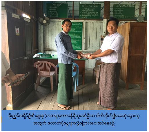 ကယ်ဆယ်ရေးနှင့်ပြန်လည်နေရာချထားရေးဦးစီးဌာန၊ မိုးညှင်းခရိုင်ဦးစီးမှူးရုံးမှ တာဝန်ရှိသူများသည် (၁၉-၄-၂၀၁၇)ရက်နေ့တွင် မိုးညှင်းမြို့နယ်၊ နန်းမားကျေးရွာအုပ်စု၊ နန်းခမ်းရပ်၊ ဗိုလ်တဲလမ်းပေါ်တွင် ဓါတ်လိုက်၍ သေဆုံးသွားသော နန်းမားကျေးရွာနေ ဦးမောင်ချင်းအတွက် ထောက်ပံ့ငွေ (၃၀၀,၀၀၀ိ/-)ကျပ် အား (၂၅-၄-၂၀၁၇) ရက်နေ့တွင် မိုးညှင်းမြို့နယ်အထွေထွေအုပ်ချုပ်ရေးမှူးရုံးသို့ လွှဲပြောင်းထောက်ပံ့ပေး ခဲ့ကြောင်း သတင်းရရှိပါသည်။