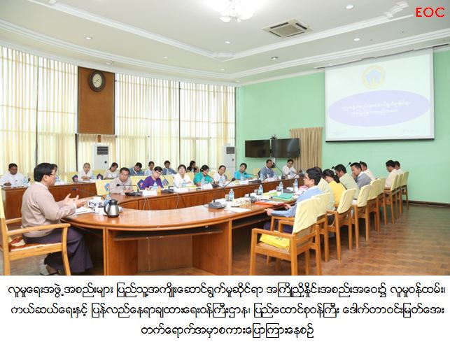 ပြည်သူလူထုအတွက် ထိရောက်ပြီး ရေရှည်အကျိုးဖြစ်ထွန်းစေသည့် ဝန်ဆောင်မှုများဖြစ်စေရေး၊ ပြည်သူ အစိုးရနှင့် အကူအညီပေးရေးဆောင်ရွက်လျက်ရှိသည့် ပြည်သူ့အခြေပြု အဖွဲ့အစည်းများအကြား လုပ်ငန်းစဉ်များ ခိုင်မာအားကောင်းစေရန် စနစ်တစ်ခုတည်ဆောက်နိုင်ရေး လူမှုရေးအဖွဲ့အစည်းများ ပြည်သူ့အကျိုးဆောင်ရွက်မှု ဆိုင်ရာ အကြိုညှိနှိုင်းအစည်းအဝေးကို ယနေ့မွန်းလွဲပိုင်းက လူမှုဝန်ထမ်း၊ ကယ်ဆယ်ရေးနှင့်ပြန်လည်နေရာချ ထားရေးဝန်ကြီးဌာန၊ ဝန်ကြီးရုံးအစည်းအဝေးခန်းမတွင် ကျင်းပပြုလုပ်ရာ ပြည်ထောင်စုဝန်ကြီး ဒေါက်တာ ဝင်းမြတ်အေး တက်ရောက်အမှာစကားပြောကြားပါသည်။ပြည်ထောင်စုဝန်ကြီးက ပြည်သူတို့၏ အလိုဆန္ဒနှင့်အညီ ပြည်သူတို့၏ လိုအပ်ချက်များကို အစိုးရက ဖြည့်ဆည်းဆောင်ရွက်ပေးခြင်းသည် ဒီမိုကရေစီအဆင့်အတန်းကို မြှင့်တင်ပေးခြင်းပင်ဖြစ်ကြောင်း၊ လူမှုရေး လုပ်ငန်းဆောင်ရွက်နေသည့် အဖွဲ့အစည်းများအများအပြားရှိပြီး မိမိတို့၏ဦးတည်ချက်များအလိုက် လုပ်ငန်း စဉ်များကို လုပ်ပုံလုပ်နည်းအမျိုးမျိုးဖြင့် ဆောင်ရွက်ကြရကြောင်း၊ အဖွဲ့အစည်းများအနေဖြင့် ပြည်သူများ အတွက် ရေတို၊ရေရှည်အကျိုးဖြစ်ထွန်းစေသည့် ဝန်ဆောင်မှုများကို မှန်ကန်ထိရောက်စွာ ဆောင်ရွက်ပေးရန် လိုကြောင်း၊ အစိုးရအဖွဲ့သစ်အနေဖြင့် ပြည်သူများလွတ်လပ်လုံခြုံစွာဖွံ့ဖြိုးတိုးတက်ရေးကို ရည်မှန်းချက်ထားရှိ ပြီး ဥပဒေ၊ နည်းဥပဒေများနှင့်အညီ ဆောင်ရွက်လျက်ရှိပါကြောင်း၊ မိမိတို့ ဝန်ကြီးဌာနအနေဖြင့်လည်း လူတိုင်း အခြေခံလူအခွင့်အရေးရရှိရေး၊ ဒီမိုကရေစီစံနှုန်းများနှင့်အညီဖြစ်စေရေး၊ လူ့ဂုဏ်သိက္ခာနှင့်ပြည့်စုံသော လူမှု အသိုက်အဝန်းတစ်ရပ်ပေါ်ထွန်းလာစေရေးတို့ကို မူဝါဒသစ်များချမှတ်ပြီး လူမှုရေးအဖွဲ့အစည်းများ၊ ပြည်သူ များနှင့်အတူပူးပေါင်းဆောင်ရွက်လျက်ရှိပါကြောင်း၊ ထိုသို့ဆောင်ရွက်ရာတွင် စဉ်ဆက်မပြတ်ဖွံ့ဖြိုးမှုပန်းတိုင် (၁၇) ရပ်ကိုလည်း ပြည့်ဝစွာအကောင်အထည်ဖော်ဆောင်ရွက်နိုင်ရန် ထည့်သွင်းဆောင်ရွက်လျက်ရှိပါကြောင်း၊ လုပ်ငန်းများပူးပေါင်းဆောင်ရွက်ရာတွင် ဥပဒေ၊ နည်းဥပဒေများနှင့်အညီဆောင်ရွက်ပြီး စနစ်တကျရှိသော လူမှုအဖွဲ့အစည်းများဖြစ်ပေါ်လာစေရေးအတွက် လုပ်ငန်းနယ်ပယ်အတွေ့အကြုံများအလိုက် ပွင့်ပွင့်လင်းလင်း ဆွေးနွေးပေးကြပါရန် ပြောကြားပါသည်။ဆက်လက်၍ အထွေထွေအုပ်ချုပ်ရေးဦးစီးဌာနက လူမှုရေးအဖွဲ့အစည်းများနှင့်ပတ်သက်၍ တာဝန်ယူ ဆောင်ရွက်နေမှုများအားလည်းကောင်း၊ ပြည်ထောင်စုရွေးကောက်ပွဲကော်မရှင်က နိုင်ငံရေးပါတီများနှင့် ပတ်သက်၍ ဆောင်ရွက်နေမှုနှင့် လူမှုအဖွဲ့အစည်းများဖြင့် ပူးပေါင်းဆောင်ရွက်နေမှု များအားလည်းကောင်း