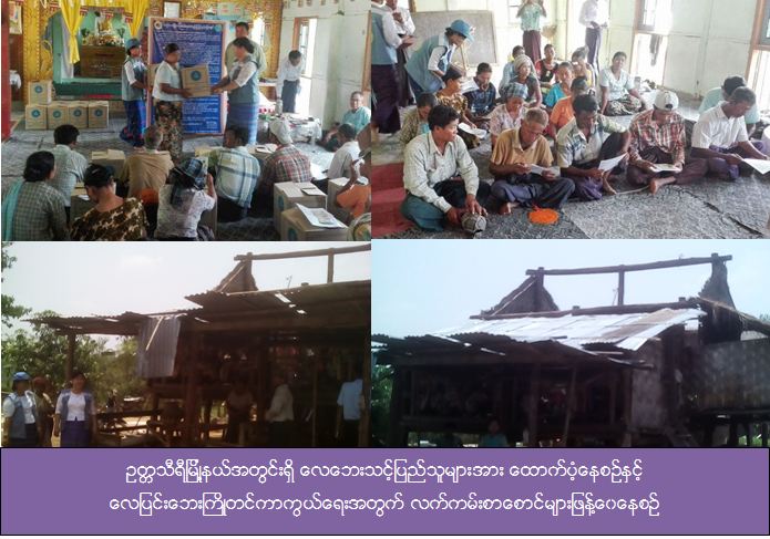 ပြည်ထောင်စုနယ်မြေ၊ ဥတ္တရသီရိမြို့နယ်၊ ဆားကျင်းကျေးရွာတွင် (၂၉.၄.၂၀၁၇) နေ့ လေဘေးသင့် ပြည်သူများအတွက် ကယ်ဆယ်ရေးပစ္စည်း (၉) မျိုး (၂၄) အိမ်ထောင်စာအား (၃၀.၄.၂၀၁၇) နေ့တွင် ကယ်ဆယ်ရေးနှင့် ပြန်လည်နေရာချထားရေးဦးစီးဌာန၊ ပြည်ထောင်စုနယ်မြေဦးစီးမှူးရုံးမှ သွားရောက်ထောက်ပ့ံပေးပြီး လေပြင်းဘေးကြိုတင်ကာကွယ်ရေး ပြည်သူသို့ပန်ကြားချက် လက်ကမ်းစာစောင်များအား ဖြန့်ဝေပေးခဲ့ကြောင်း သတင်းရရှိပါသည်။