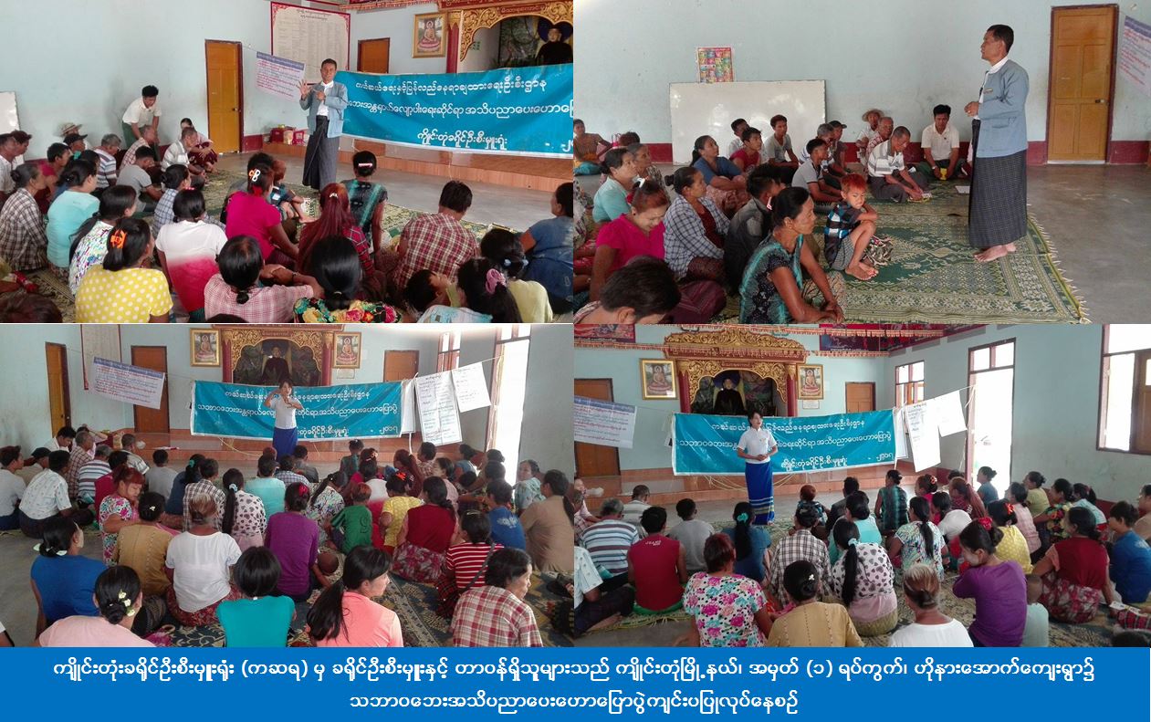 (၁-၅-၂၀၁၇) ရက်နေ့၊ နေ့လည် (၁၄းဝ၀) နာရီအချိန်တွင် ကျိုင်းတုံးခရိုင်ဦးစီးမှူးရုံး (ကဆရ) မှ ခရိုင်ဦးစီးမှူးနှင့် တာဝန်ရှိသူများသည် ကျိုင်းတုံမြို့နယ်၊ အမှတ် (၁) ရပ်ကွက်၊ ဟိုနားအောက်ကျေးရွာ၌ သဘာဝဘေးအသိပညာပေးဟောပြောပွဲကျင်းပပြုလုပ်ခဲ့ပြီး ငလျင်သရုပ်ပြလေ့ကျင့်ခန်းများဆောင်ရွက်ခဲ့ပါသည်။ ထို့နောက်တက်ရောက်သူများထံ သဘာဝဘေးအသိပညာပေးလက်ကမ်းစာစောင်များနှင့် အရေးပေါ်ဆက်သွယ်နိုင်မည့်ဖုန်းနံပါတ်များကပ်ပေးခြင်းတို့ကို ဆောင်ရွက်ခဲ့ကြပါသည်။ အဆိုပါဟောပြောပွဲသို့ လူဦးရေ (၁၁၀) ဦးတက်ရောက်ခဲ့ကြောင်း သိရှိရပါသည်။