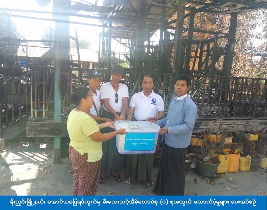 (၃၀-၄-၂၀၁၇) ရက်နေ့တွင် မိုးညှင်းမြို့နယ်၊ အောင်သပြေရပ်ကွက်၊ လမ်းသွယ် (၉)၊ အိမ်အမှတ် (၁/၁၆၈) ၌ မီးလောင်ကျွမ်းမှုဖြစ်ပွားခဲ့ရာ အဆိုပါအိမ်ခြေ (၁) လုံးမှ အိမ်ထောင်စု (၁) စုအတွက် ကယ်ဆယ်ရေးပစ္စည်း (၁၀) မျိုး၊ ဆန်ဖိုးငွေ (၁၀၅၀၀) ကျပ်နှင့် အိမ်ဆောက်ပစ္စည်းဖိုးငွေ (၂) သိန်းကျပ်၊ စုစုပေါင်း (၂၁၀၅၀၀) ကျပ်တိတိတို့အား မိုးညှင်းခရိုုင်ဦးစီးမှူးရုံး (ကဆရ) မှ တာဝန်ရှိသူများက (၃-၅-၂၀၁၇) ရက်နေ့တွင် ဘေးသင့်ပြည်သူများထံ ထောက်ပံ့ပေးခဲ့ကြောင်း သိရှိရပါသည်။