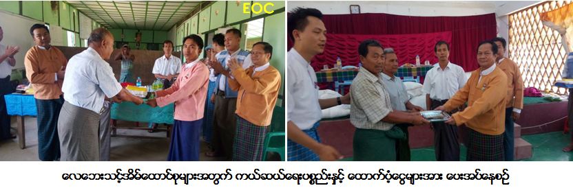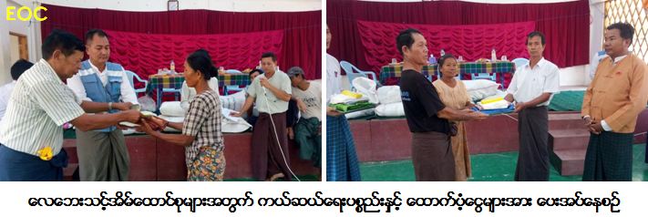 ကယ်ဆယ်ရေးနှင့်ပြန်လည်နေရာချထားရေးဦးစီးဌာန စစ်ကိုင်းတိုင်းဒေသကြီးဦးစီးမှူးရုံးမှ တာဝန်ရှိသူများသည် စစ်ကိုင်းတိုင်းဒေသကြီးအတွင်း၌ (၂-၅-၂၀၁၇) ရက်နေ့တွင် ဖြစ်ပွားခဲ့သော လေဘေးကြောင့် ယင်းမာပင်ခရိုင်၊ ကနီမြို့နယ်၊ နတ်ကြီးကျေးရွာ အိမ် (၁) အိမ်အတွက် ကယ်ဆယ်ရေးပစ္စည်း (၅) မျိုး (၁) အိမ်ထောင်စာနှင့် အိမ်ဆောက်ပစ္စည်းဖိုးငွေ (၃၀,၀၀၀)ကျပ်၊ ဝက်ချောင်းလေးကျေးရွာ အိမ် (၃၀) အိမ်အတွက် ကယ်ဆယ်ရေးပစ္စည်း (၅) မျိုး (၃၀) အိမ်ထောင်စာနှင့် အိမ်ဆောက်ပစ္စည်းဖိုးငွေ (၁,၀၆၀,၀၀၀)ကျပ်၊ အေးသာယာကျေးရွာ အိမ် (၁၅) အိမ်အတွက် ကယ်ဆယ်ရေးပစ္စည်း (၅) မျိုး (၁၅) အိမ်ထောင်စာနှင့် အိမ်ဆောက်ပစ္စည်းဖိုးငွေ (၆၈၀,၀၀၀)ကျပ်၊ သရက်ပင်ကျေးရွာ အိမ် (၁၇) အိမ်အတွက် ကယ်ဆယ်ရေးပစ္စည်း (၅) မျိုး (၁၇) အိမ်ထောင်စာနှင့် အိမ်ဆောက်ပစ္စည်းဖိုးငွေ (၅၁၀,၀၀၀)ကျပ်၊ ချိုင်ကျေးရွာ အိမ် (၆) အိမ်အတွက် ကယ်ဆယ်ရေးပစ္စည်း (၅) မျိုး (၆) အိမ်ထောင်စာနှင့် အိမ်ဆောက်ပစ္စည်းဖိုးငွေ (၁၈၀,၀၀၀)ကျပ် ဒင်ပေါက်ကျေးရွာ အိမ် (၁) အိမ်အတွက် ကယ်ဆယ်ရေးပစ္စည်း (၅) မျိုး (၁) အိမ်ထောင်စာနှင့် အိမ်ဆောက်ပစ္စည်းဖိုးငွေ (၃၀,၀၀၀)ကျပ်၊ မုဠောကျေးရွာ အိမ် (၁) အိမ်နှင့် ဘုန်းကြီးကျောင်း (၁) ကျောင်းအတွက် ကယ်ဆယ်ရေးပစ္စည်း (၅) မျိုး (၁) အိမ်ထောင်စာနှင့် အိမ်ဆောက်ပစ္စည်းဖိုးငွေ (၇၀,၀၀၀)ကျပ်နှင့် မုံရွာခရိုင် ဘုတလင်မြို့နယ် သာယာကုန်းနှင့် ချောင်းဝကြီးကျေးရွာ အိမ် (၂) အိမ်အတွက် ကယ်ဆယ်ရေးပစ္စည်း (၅) မျိုး (၂) အိမ်ထောင်စာနှင့် အိမ်ဆောက်ပစ္စည်းဖိုးငွေ (၁၄၀,၀၀၀)ကျပ် စုစုပေါင်းထောက်ပံ့မှုမှာ ကယ်ဆယ်ရေးပစ္စည်း (၅) မျိုး (၇၃) အိမ်ထောင်စာနှင့် အိမ်ဆောက်ပစ္စည်းဖိုးငွေ (၂,၇၀၀,၀၀၀) ကျပ်တို့ အား တိုင်းဒေသကြီးအစိုးရအဖွဲ့ စိုက်ပျိုးရေးဝန်ကြီး လွှတ်တော်ကိုယ်စားလှယ် ပြည်သူ့လွှတ်တော်ကိုယ်စားလှယ် ခရိုင်အုပ်ချုပ်ရေးမှူး မြို့နယ်အုပ်ချုပ်ရေးမှူး မြို့မိမြို့ဖ ဌာနဆိုင်ရာများနှင့်အတူ (၃-၅-၂၀၁၇)ရက်နေ့တွင် သွားရောက်ထောက်ပံ့ပေးအပ်ခဲ့ကြောင်း သတင်းရရှိပါသည်။