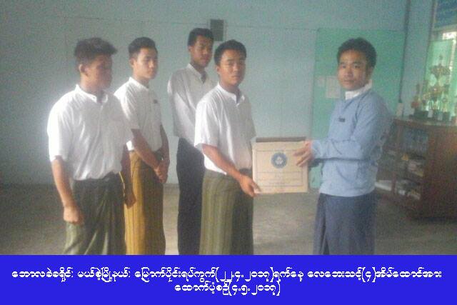 (၂၂-၄-၂၀၁၇) ရက်နေ့တွင် ဘောလခဲခရိုင်၊ မယ်စဲ့မြို့နယ်၌ လေပြင်းတိုက်ခတ်မှုကြောင့် မြောက်ပိုင်းရပ်ကွက်ရှိ အထွေထွေအုပ်ချုပ်ရေးဦးစီးဌာန ဝန်ထမ်းအိမ်ရာ (၄) ခန်းတွဲ အမိုးလန်ခဲ့ရာ အဆိုပါအိမ်ထောင်စု (၄) စုအတွက် ကယ်ဆယ်ရေးပစ္စည်း(၅)မျိုး(၄)အိမ်ထောင်စာနှင့် ဆန်ရိက္ခာဖိုး (၈၄၀၀) ကျပ်ကိုလည်းကောင်း၊