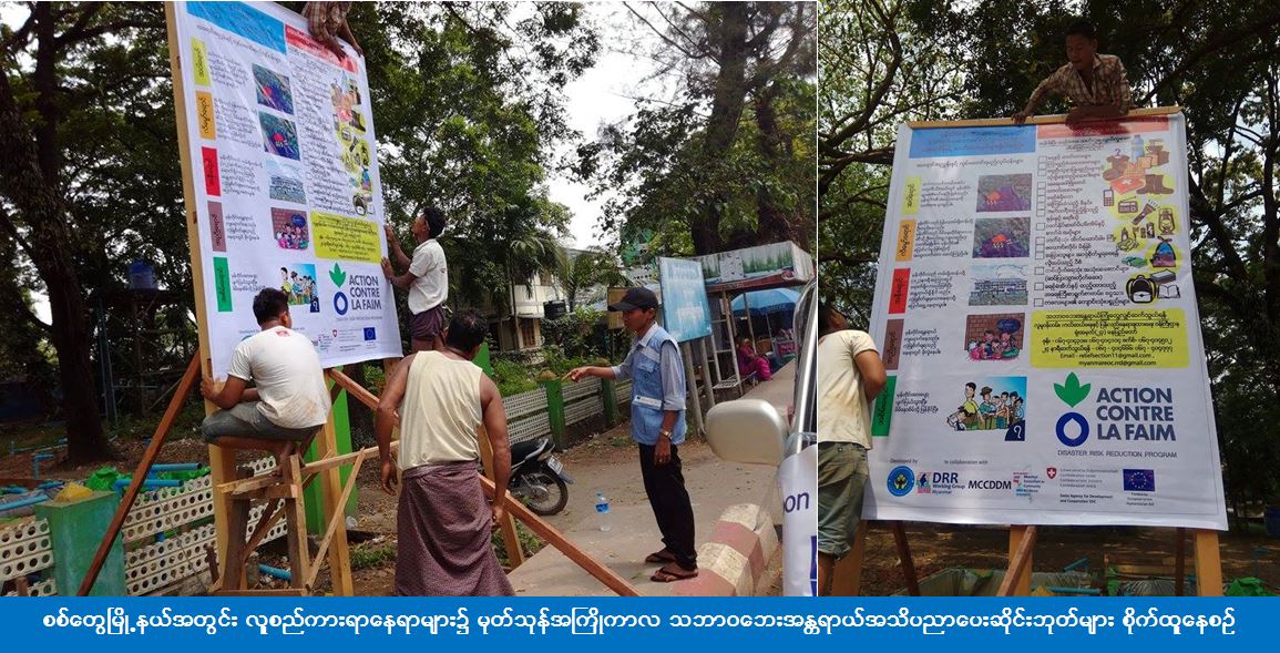 ရခိုင်ပြည်နယ်ဦးစီးမှူးရုံး (ကဆရ) မှ တာဝန်ရှိသူများသည် (၄/၅-၅-၂၀၁၇) ရက်နေ့များတွင် စစ်တွေမြို့နယ်အတွင်း လူစည်ကားရာနေရာများ၌ မုတ်သုန်အကြိုကာလ သဘာဝဘေးအန္တရာယ်အသိပညာပေးဆိုင်းဘုတ်များ စိုက်ထူခဲ့ကြောင်း သိရှိရပါသည်။
