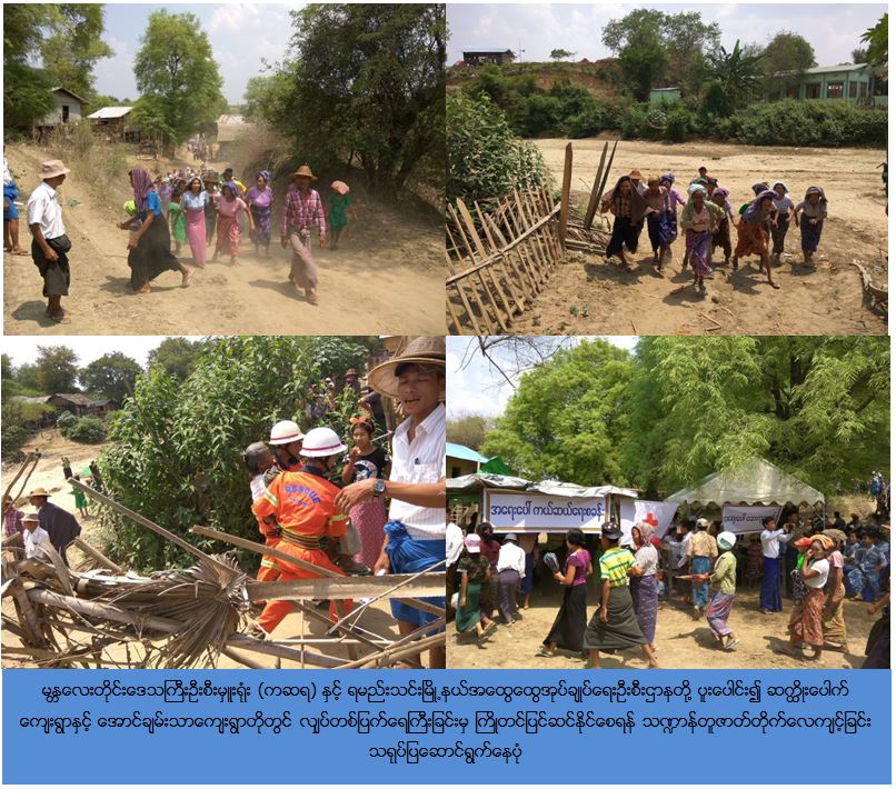 ကယ်ဆယ်ရေးနှင့်ပြန်လည်နေရာချထားရေးဦးစီးဌာန၊ မန္တလေးတိုင်းဒေသကြီးဦးစီးမှူးရုံးမှ တာဝန်ရှိသူများသည် (၄-၅-၂၀၁၇) ရက်နေ့တွင် ရမည်းသင်းမြို့နယ်အထွေထွေအုပ်ချုပ်ရေးဦးစီးဌာနနှင့် ညှိနှိုင်းလျက် ဆက္ထိုးပေါက်ကျေးရွာနှင့် အောင်ချမ်းသာကျေးရွာတို့တွင် လျှပ်တစ်ပြက်ရေကြီးခြင်းမှ ကြိုတင်ပြင်ဆင်နိုင်စေရန်သဏ္ဍာန်တူဇာတ်တိုက်လေ့ကျင့်ခြင်းကို ကျေးရွာသူ/သားများနှင့်အတူ မြို့နယ် ရဲတပ်ဖွဲ့၊ မီးသတ်တပ်ဖွဲ့၊ ကြက်ခြေနီတပ်ဖွဲ့၊ မြို့နယ်ဆရာဝန်နှင့် ပြည်သူ့ကျန်းမာရေးအဖွဲ့အစည်းများ စုစုပေါင်းလူဦးရေ (၄၀၀)ကျော်ပူးပေါင်းပါဝင်ဆောင်ရွက်ခဲ့ကြောင်း သတင်းရရှိပါသည်။