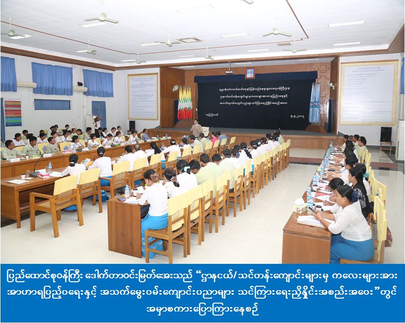 နိုင်ငံတော် အစိုးရအနေဖြင့် လူမှုကာကွယ်စောင့်ရှောက်ရေးလုပ်ငန်းများကို ထိရောက်စွာ ဆောင်ရွက်လျက်ရှိကြောင်း၊ ယခု ၂၀၁၇ – ၂၀၁၈ ဘဏ္ဍာနှစ်တွင် လူမှု၀န်ထမ်းဌာန၏ သင်တန်းကျောင်း/ ဌာနငယ်မှ ကလေးများအတွက် တစ်နေတာ စားစရိတ်ကို ယခင် တစ်ဦးလျှင် (၄၃၂) ကျပ်မှ ယခု (၁၀၀၀) ကျပ်သို့ တိုးမြှင့်ခဲ့သဖြင့် ထိရောက်စွာ အာဟာရပြည့် ကျွေးမွေးနိုင်ရန် အရေးကြီးကြောင်း၊ ကလေးငယ်များ၏ အသက်အရွယ်နှင့် ကိုယ်အလေးချိန်အလိုက် အာဟာရတန်ဖိုးများကို တွက်ချက်၍ ကျွေးမွေးရန် စီစဉ်ထားကြောင်း၊ ကလေးများ၏ ခန္ဓာကိုယ်ကြီးထွားမှုနှင့် ဦးဏှောက်ဖွံ့ဖြိုးတိုးတက်ရေးအတွက် အာဟာရသည် အရေးကြီးကြောင်း၊ ကလေးများ၏ ဖွံ့ဖြိုးတိုးတက်ရေးကို ထိရောက်စွာ ဆောင်ရွက်ခြင်းသည် အနာဂါတ်နိုင်ငံတော် ဖွံ့ဖြိုးတိုးတက်ရေးအတွက် အရေးပါသော ဆောင်ရွက်ချက်တစ်ရပ်ဖြစ်ကြောင်း၊ အကောင်အထည်ဖော်ရန်မှာ သင်တန်းကျောင်း/ဌာနငယ်များမှ ၀န်ထမ်းများ၏ ရိုးသား၊ ကြိုးစားမှုဖြင့်သာ ဆောင်ရွက်နိုင်မည် ဖြစ်ကြောင်းဖြင့် ယနေ့မွန်းလွဲပိုင်းတွင် လူမှု၀န်ထမ်း၊ ကယ်ဆယ်ရေးနှင့် ပြန်လည်နေရာချထားရေး ၀န်ကြီးဌာန၊ အစည်းအဝေးခန်းမတွင် ကျင်းပပြုလုပ်သည့် ညှိနှိုင်းအစည်းအဝေးတွင် ပြည်ထောင်စု၀န်ကြီး ဒေါက်တာ၀င်းမြတ်အေးက ပြောကြားခဲ့ပါသည်။