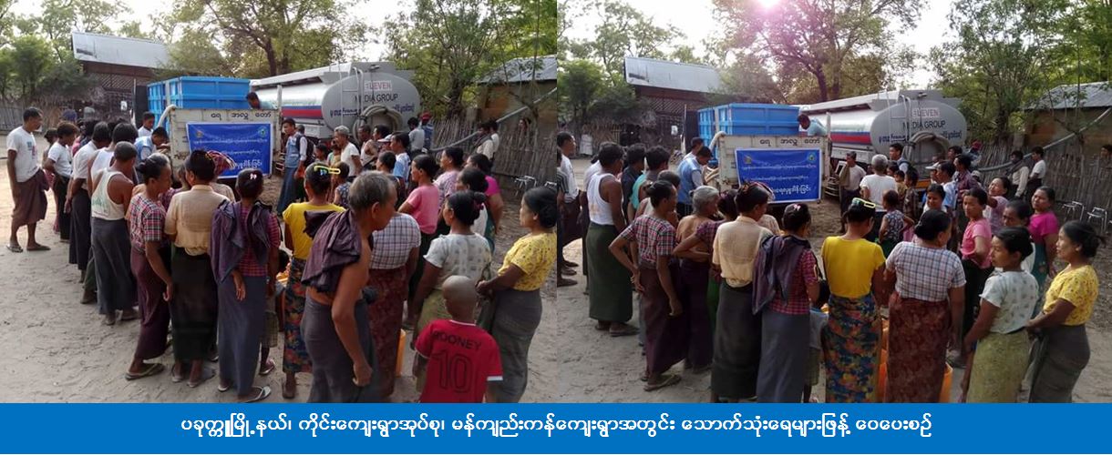 ကယ်ဆယ်ရေးနှင့် ပြန်လည်နေရာချထားရေးဦးစီးဌာန၊ မကွေးတိုင်းဒေသကြီး၊ ပခုက္ကူခရိုင်ဦးစီးဌာနမှ တာဝန်ရှိသူများသည် (၅-၅-၂၀၁၇) ရက်နေ့တွင် သောက်သုံးရေရှားပါးသော ပခုက္ကူခရိုင်၊ ပခုက္ကူမြို့နယ်၊ ကိုင်းကျေးရွာအုပ်စု၊ မန်ကျည်းကန်ကျေးရွာမှ အိမ်ထောင်စု (၁၂၀) စု၊ အိမ်ခြေ (၁၂၀)၊ လူဦးရေ (၅၉၇) ဦးအတွက် သောက်သုံးရေဂါလံ (၄၈၀၀) အား ဆရာတော်ဦးသောဘန (ပခုက္ကူမြို့အာယုသုခရေကုသိုလ်တော်ယာဉ်) Eleven Media Group ရေအလှူတော်ကား၊ ပုညမုဒိတာလူမှုကူညီရေးအသင်းတို့ဖြင့် ပူးပေါင်းဆောင်ရွက်၍ သွားရောက်ဖြန့်ဝေခဲ့ကြောင်း သိရှိရပါသည်။