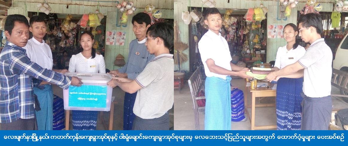 (၅-၅-၂၀၁၇) ရက်နေ့တွင် လေးမျက်နှာမြို့နယ်၊ ကတက်ကုန်းကျေးရွာအုပ်စုနှင့် ဝါးရုံချောင်း ကျေးရွာအုပ်စုတို့၌ လေပြင်းတိုက်ခတ်မှုကြောင့် ဝါးအိမ် (၂) လုံး လုံးဝပျက်စီးခဲ့ပြီး၊ ဝါးအိမ် (၁) လုံးမှာ တစိတ်တပိုင်းပျက်စီးခဲ့ရာ လုံးဝပျက်စီးအိမ် (၂) လုံးအတွက် ကယ်ဆယ်ရေးပစ္စည်း (၉) မျိုး (ပလတ်စတစ်ပုံးပါ) ကိုလည်းကောင်း၊ တစိတ်တပိုင်းပျက်စီးအိမ်ခြေ (၁) လုံးအတွက် ကယ်ဆယ်ရေးပစ္စည်း (၄) မျိုးကိုလည်းကောင်း၊ လူဦးရေ (၁၀) ဦးအတွက် (၇) ရက်စာဆန်ရိက္ခာဖိုး (၂၁၀၀၀) ကျပ်တို့အား တိုင်းဒေသကြီးလွှတ်တော်ကိုယ်စားလှယ် ဦးကျော်စိုးနှင့် ဟင်္သာတခရိုင် ကယ်ဆယ်ရေးရုံးမှ တာဝန်ရှိသူများသည် (၆-၅-၂၀၁၇) ရက်နေ့တွင် အထွေထွေအုပ်ချုပ်ရေးဦးစီးဌာနမှတာဝန်ရှိသူများနှင့်အတူ ဘေးသင့်ပြည်သူများလက်ဝယ်သို့ ကွင်းဆင်း၍ ပေးအပ်ထောက်ပံခဲ့ကြောင်း သိရှိရပါသည်။
