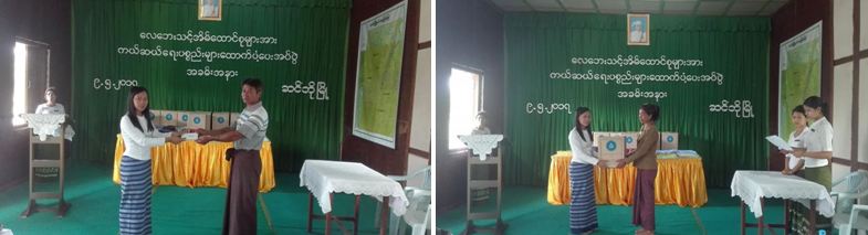 ကယ်ဆယ်ရေးနှင့်ပြန်လည်နေရာချထားရေးဦးစီးဌာန၊ ကချင်ပြည်နယ်ဦးစီးမှူးရုံးမှ တာဝန်ရှိသူများသည် ကချင်ပြည်နယ် ဆင်ဘိုမြို့၊ မံဖွားကျေးရွာ၊ ညောင်ပင်သာကျေးရွာနှင့် တာဟိုးနားကျေးရွာတို့တွင် (၅-၅-၂၀၁၇)ရက်နေ့တွင် ဖြစ်ပွားသော လေပြင်းတိုက်ခတ်မှုကြောင့် ဘေးသင့်အိမ်ခြေ (၃၅) လုံး အိမ်ထောင်စု (၃၅) စု လူဦးရေ (၁၇၆) ဦးတို့အတွက် ကယ်ဆယ်ရေးပစ္စည်း(၄) မျိုး ဆန််ရိက္ခာဖိုးငွေ (၃၆၉,၆၀၀)ကျပ်နှင့် အိမ်ဆောက်ပစ္စည်းဖိုးငွေ (၃,၅၀၀,၀၀၀) ကျပ် ထောက်ပ့ံမှုအခမ်းအနားကို ဆင်ဘိုမြို့အထွေထွေအုပ်ချုပ်ရေးမှူးရုးံ၌ (၉-၅-၂၀၁၇) ရက်နေ့ (၁၅:၃၀) နာရီအချိန်တွင် ကျင်းပခဲ့ရာ အနောက်မြောက်ပိုင်းတိုင်း စစ်ဌာနချုပ် အမှတ် (၁) ဗျူဟာမှူး ဗို်လ်မှူးကြီး ဦးအောင်မျိုးသန့်မှ အဖွင့်အမှာစကားပြောကြားခဲ့ပြီး ကချင်ပြည်နယ်ဦးစီးမှူးရုံးမှ ဦးစီးအရာရှိ ဒေါ်ဖြူဖြူမြင့်က ထောက်ပ့ံမှုနှင့် စပ်လျဉ်း၍ရှင်းလင်းပြောကြားခဲ့ပြီး ကယ်ဆယ်ရေးပစ္စည်းနှင့် ငွေများထောက်ပ့ံပေးအပ်ခဲ့ပါသည်။ ထို့နောက် မြို့အုပ်ချုပ်ရေးမှူးဦးထွန်းထွန်းကျော်မှ နိဂုံးချုပ်ကျေးဇူးတင်စကားပြောကြားခဲ့ကာ အခမ်းအနားကို (၁၇:၀၀)အချိန်တွင်ရုပ်သိမ်းခဲ့ပြီး ဘေးသင့်ပြည်သူများအား လက်ကမ်းစာစောင်များနှင့် လေပြင်းဘေးသတိပေးချက်များကို ဖြန့်ဝေပေးခဲ့ကြောင်း သတင်းရရှိပါသည်။Source: ကချင်ပြည်နယ်ဦးစီးမှူးရုံး (ကဆရ)
