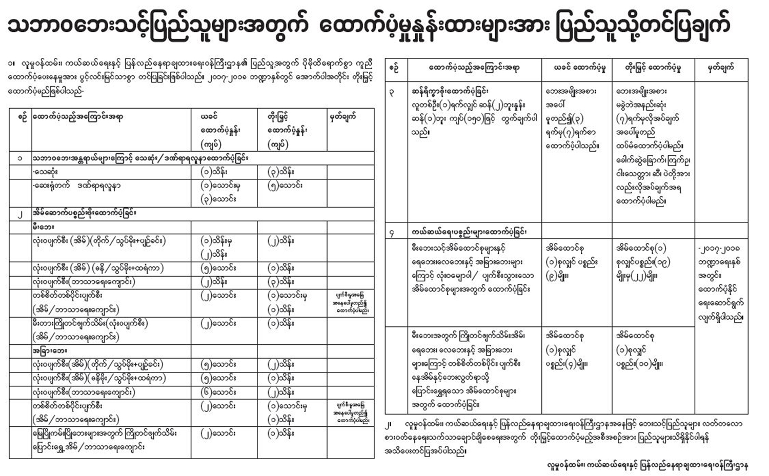 လူမှုဝန်ထမ်း၊ကယ်ဆယ်ရေးနှင့်ပြန်လည်နေရာချထားရေးဝန်ကြီးဌာန၏ ပြည်သူ့အတွက်ပိုမို ထိရောက်စွာ ကူညီထောက်ပံ့ပေးနေမှုအား ပွင့်လင်းမြင်သာစွာ တင်ပြခြင်းဖြစ်ပါသည်။ ၂၀၁၇-၂၀၁၈ ဘဏ္ဍာနှစ်တွင် အောက်ပါအတိုင်းတိုးမြှင့်ထောက်ပံ့မည်ဖြစ်ပါသည်-