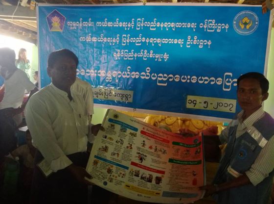 ကယ်ဆယ်ရေးနှင့်ပြန်လည်နေရာချထားရေးဦးစီးဌာန၊ ရခိုင်ပြည်နယ်ဦးစီးမှူးရုံး မှ တာဝန်ရှိ သူများသည် (၁၄-၅-၂၀၁၇) ရက်နေ့ (၁၃းဝ၀)နာရီမှ (၁၄း၄၅)နာရီထိ စစ်တွေမြို့နယ်၊ ရေချမ်းပြင်ကျေးရွာဘုန်းတော်ကြီးကျောင်း ၌ ကျေးရွာသူ/သား (၂၀၀)အား မုတ်သုန်အကြိုကာလ သဘာဝဘေးအသိပညာပေးဟောပြောပွဲ ပြုလုပ်ခဲ့ပြီး ဘေး(၈)မျိုး လက်ကမ်းစာစောင်များဖြန့်ဝေခြင်း နံရံကပ်ပိုစတာများအား ကျေးရွာအုပ်ချုပ်ရေးမှူးထံပေးအပ်ခဲ့သတင်းရရှိသည်။Source: ရခိုင်ပြည်နယ်ဦးစီးမှူးရုံး (ကဆရ)