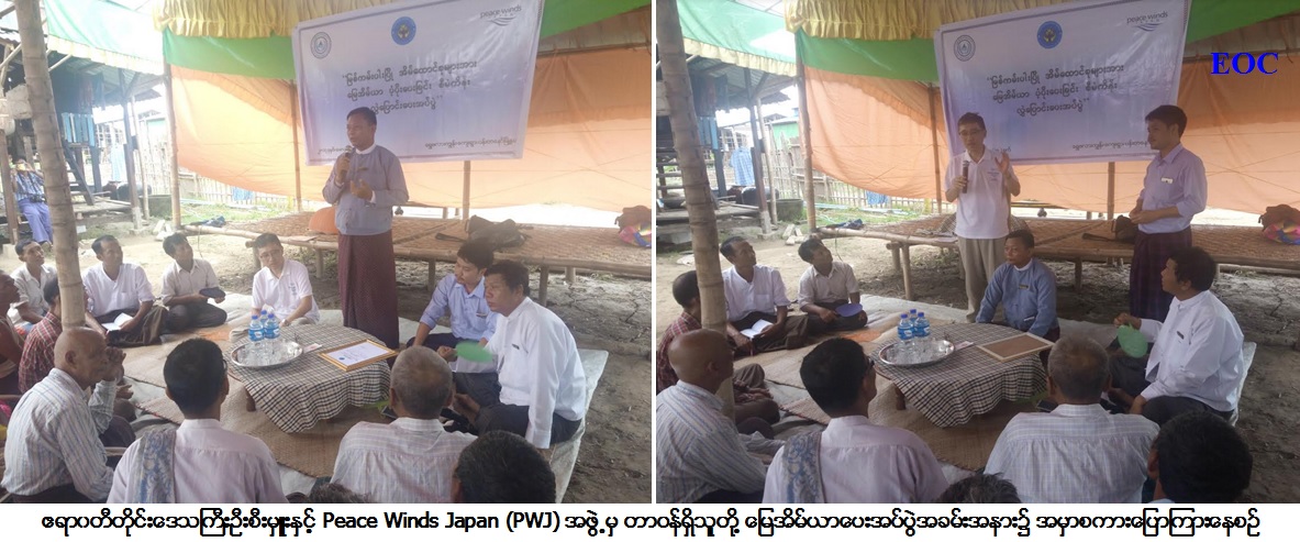 ဧရာဝတီတိုင်းဒေသကြီး၊ မအူပင်ခရိုင်၊ ပန်းတနော်မြို့နယ်၊ ကဿဝင်ကျေးရွာအုပ်စု၊ ရွှေဖလားကျွန်းကျေးရွာတွင် မြစ်ကမ်းပြိုမှုကြောင့် ရွှေ့ပြောင်းခဲ့ရသည့် အိမ်ထောင်စု (၆၅) စုအတွက် မြေနေရာ၊ အိမ်နှင့် သောက်သုံးရေပံ့ပိုးပေးခြင်းစီမံကိန်းလုပ်ငန်းအား လူမှုဖွံ့ဖြိုးတိုးတက်ရေး အသင်း (CDA) မှ နိုင်ငံတကာအဖွဲ့အစည်းတစ်ခုဖြစ်သော Peace Winds Japan (PWJ) အဖွဲ့၏ ရန်ပုံငွေပံ့ပိုးမှုနှင့်အတူ အကောင် အထည်ဖော်ဆောင်ရွက်ခဲ့၍ (၁၇-၅-၂၀၁၇) ရက်နေ့တွင် မြေအိမ်ယာပေးအပ်ပွဲအခမ်းအနားကျင်းပပြုလုပ်ခဲ့ရာ ကယ်ဆယ်ရေးနှင့်ပြန်လည် နေရာချထားရေးဦးစီးဌာန၊ ဧရာဝတီတိုင်းဒေသကြီးဦးစီးမှူး ဦးသန်းစိုး (ညွှန်ကြားရေးမှူး) မှ တက်ရောက်အမှာစကားပြောကြားခဲ့ကြောင်း သတင်းရရှိပါသည်။