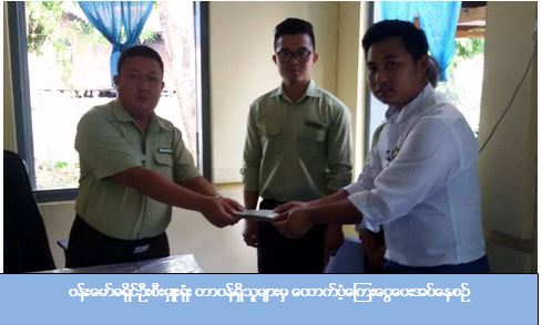 (၁၉.၅.၂၀၁၇) ကချင်ပြည်နယ်၊ ဗန်းမော်ခရိုင်၊ မန်စီမြို့နယ်၊ မံဝိန်းကြီးကျေးရွာတွင် (၁၁.၅.၂၀၁၇)ရက်နေ့ ဖြစ်ပွားခဲ့သည့် မိုင်းပေါက်ကွဲမှုကြောင့် ထိခိုက်ဒဏ်ရာရရှိသူ (၂) ဦးအား (၁၉.၅.၂၀၁၇) ရက်နေ့တွင် ဗန်းမော်ခရိုင်ဦးစီးမှူးရုံး တာဝန်ရှိသူများမှ ထိခိုင်ဒဏ်ရာရသူ(၁)ဦးလျှင် (၅၀၀၀၀ိ/-)နှုန်းဖြင့် (၂)ဦးအတွက် စုစုပေါင်းထောက်ပံ့ကြေးငွေ (၁၀၀၀၀၀ိ/-)ကျပ် အား သွားရောက်ထောက်ပံ့ပေးခဲ့ကြောင်း သတင်းရရှိပါသည်။