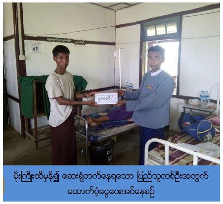 ကယ်ဆယ်ရေးနှင့်ပြန်လည်နေရာချထားရေးဦးစီးဌာန၊ မြောက်ဦးခရိုင်ဦးစီးမှူးရုံးမှတာဝန်ရှိသူများသည် (၂၁-၅-၂၀၁၇)ရက်နေ့တွင် ကျောက်တော်မြို့နယ်၊ အပေါက်ဝကျေးရွာအုပ်စု၊ အပေါက်ဝကျေးရွာ(ပေါ်တော်မူ)တွင် မိုးကြိုးထိမှန်ပြီး ဆေးရုံတက်နေရသော ပြည်သူ (၁) ဦးအား (၂၂-၅-၂၀၁၇) ရက်နေ့တွင် ထောက်ပံ့ငွေ (၅၀,၀၀၀ိ/-)ကျပ်ကို အပေါက်ဝတိုက်နယ်ဆေးရုံသို့ သွားရောက်ထောက်ပံ့ပေးခဲ့ကြောင်း သတင်းရရှိပါသည်။Source: မြောက်ဦးခရိုင်ဦးစီးမှူးရုံး(ကဆရ)
