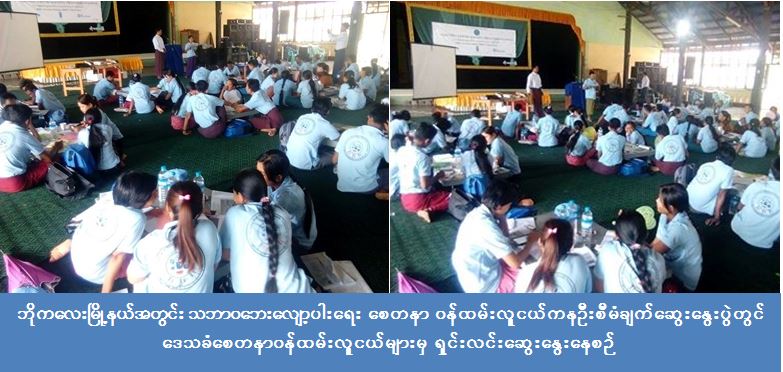 (၂၂-၅-၁၇) ရက်နေ့တွင် ဖျာပုံခရိုင်ဦးစီးမှူးရုံး (ကဆရ) မှ တာဝန်ရှိသူများသည် UNDRRYV စီမံချက်အရ ဘိုကလေးမြို့နယ် အောင်တော်မူဘုရားဝင်းအတွင်းရှိ ချိုကြည်တန်ဆောင်းတွင် ဘိုကလေးမြို့နယ် အတွင်းရှိ ဘေးဖြစ်နိုင်ခြေများသည့် ကမ်းရိုးတန်းဒေသများ၌ ဘေးအန္တရာယ် များကြောင့် ဆုံးရှုံးနိုင်ခြေလျှော့ချရေးဆိုင်ရာ သိမြင်မှု မြှင့်တင်ရေးအစီအစဉ်အရ သဘာဝဘေး လျော့ပါးရေး စေတနာ့ဝန်ထမ်းလူငယ် ကနဦးစီမံချက် ဆွေးနွေးပွဲကို ကျင်းပပြုလုပ်ခဲ့ရာ ဒေသခံ (၆၀) ဦး တက်ရောက်ခဲ့ကြောင်း သိရှိရပါသည်။