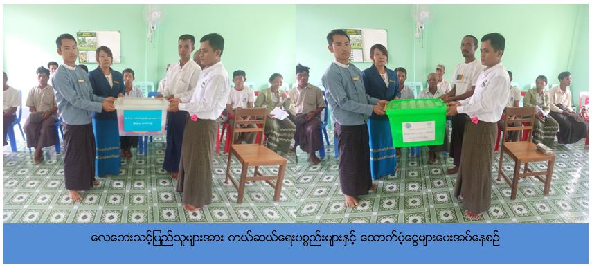 ကယ်ဆယ်ရေးနှင့်ပြန်လည်နေရာချထားရေးဦးစီးဌာန၊ ဧရာဝတီတိုင်းဒေသကြီးဦးစီးမှူးရုံးမှတာဝန်ရှိသူများသည် ပုသိမ်ခရိုင်၊ ကျုံပျော်မြို့နယ်၊ သစ်တောကြီးကျေးရွာအုပ်စု၊ ကျောင်းစုကျေးရွာနှင့် စပါးထားရိုးကျေးရွာတို့တွင် (၁၉-၅-၂၀၁၇) ရက်နေ့၌ ဖြစ်ပွားခဲ့သောလေပြင်းတိုက်ခတ်မှုကြောင့် ပြိုကျပျက်စီးနေအိမ် (၁) လုံး အတွက်ကယ်ဆယ်ရေးပစ္စည်း (၂၂) မျိုးပါ Family Kits (၁) ပုံး၊ အိမ်ဆောက်ပစ္စည်းဖိုး (၁၀၀,၀၀၀ိ/-)ကျပ်၊ အမိုးလန်နေအိမ် (၈) လုံးအတွက် ကယ်ဆယ်ရေးပစ္စည်း (၁၀) မျိုးပါ (၈) ပုံး၊ အိမ်ဆောက်ပစ္စည်းဖိုး (၁၂၀,၀၀၀ိ/-)ကျပ်၊ လူဦးရေ (၃၉) ဦးအတွက် ဆန်ရိက္ခာ (၇) ရက်စာ (၈၁,၉၀၀ိ/-)ကျပ်၊ စုစုပေါင်းထောက်ပံ့ငွေ (၃၀၁,၉၀၀ိ/-)ကျပ်တို့အား (၂၃-၅-၂၀၁၇) ရက်နေ့တွင် လေဘေးသင့်ပြည်သူများ လက်ဝယ်အရောက် ကွင်းဆင်းထောက်ပံ့ပေးခဲ့ကြောင်း သတင်းရရှိပါသည်။ Source: ဧရာဝတီတိုင်းဒေသကြီးဦးစီးမှူးရုံး(ကဆရ)