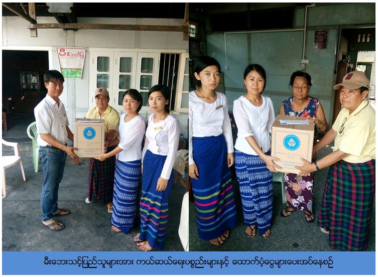 ကယ်ဆယ်ရေးနှင့်ပြန်လည်နေရာချထားရေးဦးစီးဌာန၊ ကချင်ပြည်နယ်ဦးစီးမှူးရုံးမှ တာဝန်ရှိသူများသည် (၂၃-၅-၂၀၁၇) ရက်နေ့၊ မြစ်ကြီးနားမြို့၊ မြို့သစ်ရပ်ကွက်၌ ဖြစ်ပွားခဲ့သောမီးဘေးတွင် မီးဘေးသင့်အိမ်ခြေ (၂) လုံး၊ အိမ်ထောင်စု (၂) စု၊ လူဦးရေ (၁၄) ဦိးတို့အတွက် ကယ်ဆယ်ရေးပစ္စည်း (၉) မျိုး၊ အိမ်ထောင်စု (၂) စုစာ ဆန်ရိက္ခာ (၇) ရက်စာဖိုးငွေ (၂၉,၄၀၀ိ/-)ကျပ်နှင့် အိမ်ဆောက်ပစ္စည်းဖိုးငွေ (၂၀၀,၀၀၀ိ/-)ကျပ်တို့အား (၂၄-၅-၂၀၁၇) ရက်နေ့တွင် ကွင်းဆင်းထောက်ပံ့ပေးခဲ့ကြောင်း သတင်းရရှိပါသည်။Source: ကချင်ပြည်နယ်ဦးစီးမှူးရုံး(ကဆရ)