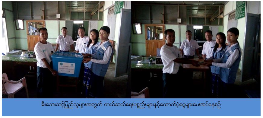 ကယ်ဆယ်ရေးနှင့်ပြန်လည်နေရာချထားရေးဦးစီးဌာန၊ ကသာခရိုင်ဦးစီးမှူးရုံးမှတာဝန်ရှိသူများသည် (၂၃-၅-၂၀၁၇) ရက်နေ့၌ ကသာခရိုင်၊ အင်းတော်မြို့နယ်၊ မအူကုန်းကျေးရွာအုပ်စု၊ လယ်ပြင်ကျေးရွာတွင်ဖြစ်ပွားသော မီးဘေးတွင် မီးဘေးသင့်အိမ်ခြေ (၁) လုံး အတွက်အိမ်ထောင်စု (၁) စုစာ family kits (၁) ပုံး၊ ဆန်ရိက္ခာဖိုး (၁၆,၈၀၀ိ/-)ကျပ်နှင့် အိမ်ဆောက်ပစ္စည်းဖိုး (၂၀၀,၀၀၀ိ/-)ကျပ်တို့ကို (၂၄-၅-၂၀၁၇) ရက်နေ့တွင် သွားရောက်ထောက်ပံ့ပေးခဲ့ကြောင်း သတင်းရရှိပါသည်။