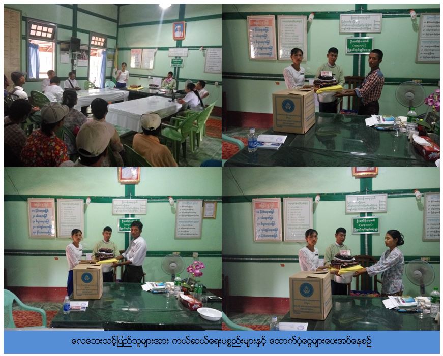 ကယ်ဆယ်ရေးနှင့်ပြန်လည်နေရာချထားရေးဦးစီးဌာန၊ ပြည်ခရိုင်ဦးစီးမှူးရုံးမှတာဝန်ရှိသူများသည် သာယာဝတီခရိုင်၊ လက်ပံတန်းမြို့နယ်၊ ယွန်းသွယ်ကျေးရွာအုပ်စု၊ ယွန်းသွယ်ကျေးရွာနှင့် စာဖြူစုကျေးရွာတို့တွင် (၁၈-၅-၂၀၁၇)ရက်နေ့နှင့် (၁၉-၅-၂၀၁၇)ရက်နေ့တို့တွင် လေပြင်းတိုက်ခတ်မှုကြောင့် အမိုးလန်အိမ်ခြေ (၂၀) လုံး အတွက် အိမ်ဆောက်ပစ္စည်းဖိုးထောက်ပံ့ငွေ (၂၀,၀၀,၀၀၀ိ/-)ကျပ်၊ ပြိုလဲနေအိမ် (၁၁) လုံး အတွက် အိမ်ဆောက်ပစ္စည်းဖိုးထောက်ပံ့ငွေ (၁၄,၀၀,၀၀၀ိ/-)ကျပ်၊ ဘေးသင့်လူဦးရေ (၄၂) ဦး အတွက် ဆန်ရိက္ခာဖိုးထောက်ပံ့ငွေ (၈၈,၂၀၀ိ/-)ကျပ်၊ စုစုပေါင်းထောက်ပံ့ငွေ (၃၄,၈၈,၂၀၀ိ/-)ကျပ်နှင့် ကတ္ထူပုံးပါ ကယ်ဆယ်ရေးပစ္စည်း (၉) မျိုးတို့ကို (၂၄-၅-၂၀၁၇) ရက်နေ့တွင် သွားရောက်ထောက်ပံ့ ပေးခဲ့ကြောင်း သတင်းရရှိပါသည်။Source: ပြည်ခရိုင်ဦးစီးမှူးရုံး(ကဆရ)