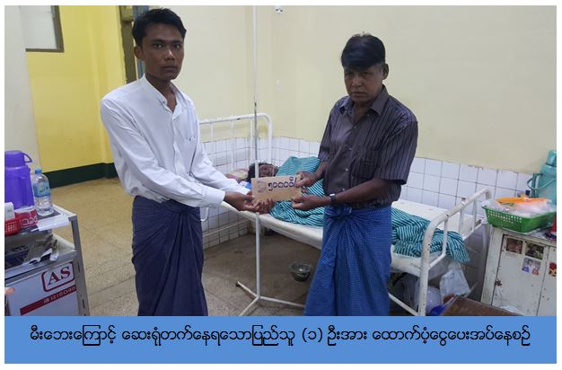 ကယ်ဆယ်ရေးနှင့်ပြန်လည်နေရာချထားရေးဦးစီးဌာန၊ တနင်္သာရီတိုင်းဒေသကြီးဦးစီးမှူးရုံးမှ တာဝန်ရှိသူများ သည် (၂၁-၅-၂၀၁၇)ရက်နေ့တွင် ထားဝယ်ခရိုင်၊ သရက်ချောင်းမြို့နယ်၊ ကဇိကျေးရွာအုပ်စု၊ကဇိကျေးရွာတွင် မီးဘေးကြောင့် ဆေးရုံတက်နေရသောလူနာ (၁) ဦးအတွက် ထောက်ပံ့ငွေ (၅၀,၀၀၀ိ/-)ကျပ်အား ထားဝယ်မြို့၊ ပြည်သူ့ဆေးရုံကြီးတွင် သွားရောက်ထောက်ပံ့ပေးခဲ့ပါသည်။ Source: တနင်္သာရီတိုင်းဒေသကြီးဦးစီးမှူးရုံး(ကဆရ)