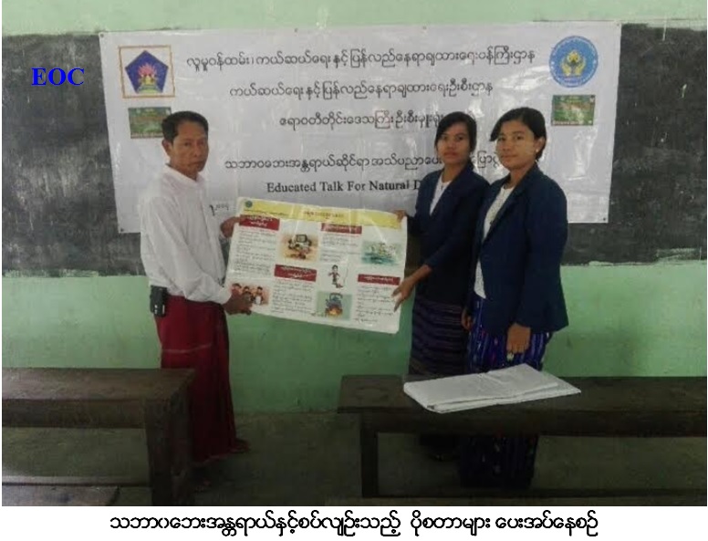 လူမှုဝန်ထမ်း၊ ကယ်ဆယ်ရေးနှင့်ပြန်လည်နေရာချထားရေးဝန်ကြီးဌာန၊ ကယ်ဆယ်ရေးနှင့့်ပြန်လည်နေရာချထားရေးဦးစီးဌာန၊ ဧရာဝတီတိုင်းဒေသကြီးဦးစီးမှူးရုံးမှ တာဝန်ရှိသူများသည် (၂၇-၅-၂၀၁၇) ရက်နေ့တွင် ဧရာဝတီတိုင်းဒေသကြီး၊ ကန်ကြီးထောင့်မြို့နယ်၊ ကွင်းလျား(အနောက်)အုပ်စု၊ ကုန်းစုကျေးရွာ၌ သဘာဝဘေး အန္တရာယ်လျော့ပါးရေးဆိုင်ရာ အသိပညာပေးဟောပြောပွဲ အား ကျင်းပပြုလုပ်ခဲ့ရာ ပြည်သူ (၁၀၀) ဦး တက်ရောက်ခဲ့ပါသည်။ ၎င်းနောက် မီးဘေး၊ ရေဘေး၊ မုန်တိုင်းဘေး၊ ငလျင်ဘေး၊ ဆူနာမီဘေး၊ မြေပြိုဘေး၊ မိုးကြိုးဘေးအသိပညာပေးလက်ကမ်းစာစောင်များ၊ ပိုစတာများဖြန့်ဝေခဲ့ပါသည်။ ၎င်းနောက် လေပြင်းဘေးကြိုတင်ပြင်ဆင်ရန်ပြည်သူများသို့ပန်ကြားချက် ဗွီနိုင်းအား အုပ်ချုပ်ရေးမှူးရုံးတွင် စိုက်ထူခြင်းများဆောင်ရွက်ခဲ့ကြောင်း သတင်းရရှိပါသည်။