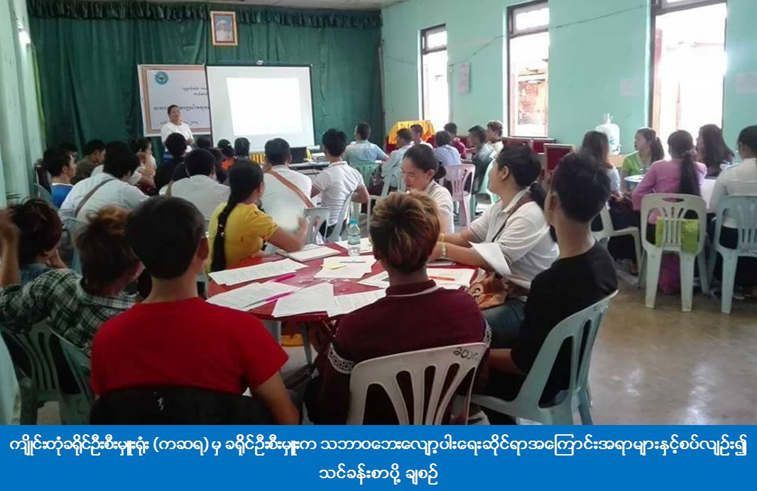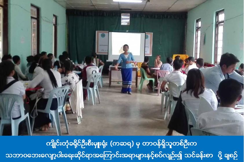 ကယ်ဆယ်ရေးနှင့် ပြန်လည်နေရာချထားရေးဦးစီးဌာန၊ ကျိုင်းတုံခရိုင်ဦးစီးမှူးရုံး (ကဆရ) မှ တာဝန်ရှိသူများသည် (၂၄-၅-၂၀၁၇) ရက်နေ့တွင် ကျိုင်းတုံမြို့နယ် အထွေထွေအုပ်ချုပ်ရေးဦးစီးဌာနအစည်းအဝေးခန်းမ၌ “သဘာဝဘေးလျော့ပါးရေးစေတနာ့ဝန်ထမ်းလူငယ်(မွမ်းမံ)သင်တန်း” ကို ဖွင့်လှစ်ခဲ့ပါသည်။ အဆိုပါသင်တန်းသို့ သင်တန်းသား (၅၀) ဦး တက်ရောက်ခဲ့ပြီး (၂၄-၅-၂၀၁၇) မှ (၂၆-၅ ၂၀၁၇) ထိ (၃) ရက်တာ သင်တန်းဖွင့်လှစ်ခဲ့ကြောင်း သိရှိရပါသည်။