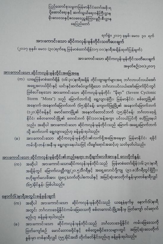 အားကောင်းသော ဆိုင်ကလုန်းမုန်တိုင်းသတိပေးချက် အမှတ်စဉ်(၁၀)၊၂၀၁၇.