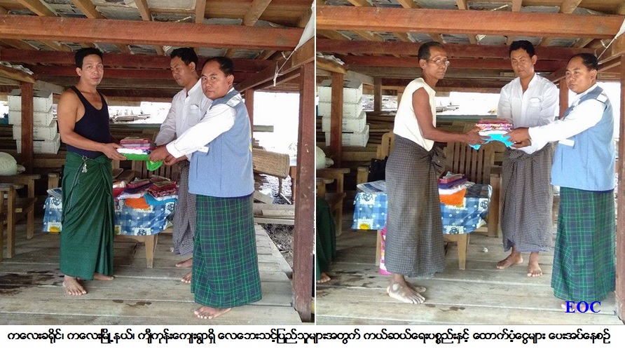 ကယ်ဆယ်ရေးနှင့်ပြန်လည်နေရာချထားရေးဦးစီးဌာန၊ ကလေးခရိုင်ဦးစီးရုံးမှ တာဝန်ရှိသူများသည် (၃၀-၅-၂၀၁၇) ရက်နေ့၊ ညနေ (၃း၃၀) နာရီအချိန်၌ ဖြစ်ပွားသောလေဘေးကြောင့် စစ်ကိုင်းတိုင်းဒေသကြီး၊ ကလေးခရိုင်၊ ကလေးမြို့နယ်၊ ကျီကုန်းကျေးရွာတွင် အမိုးလန်ပျက်စီး လူနေအိမ် (၄) လုံးအတွက် (၁) အိမ်ထောင်လျှင် ကယ်ဆယ်ရေးပစ္စည်း (၅) မျိုးနှင့် အိမ်ဆောက်ပစ္စည်းဖိုးငွေစုစုပေါင်း (၁၀၀၀၀၀/-) တို့အား ကျီကုန်းကျေးရွာအုပ်ချုပ်ရေးမှူးရုံး၌ (၃၁-၅-၂၀၁၇) ရက်နေ့တွင် သွားရောက်ထောက်ပံ့ပေးခဲ့ကြောင်း သတင်းရရှိပါသည်။