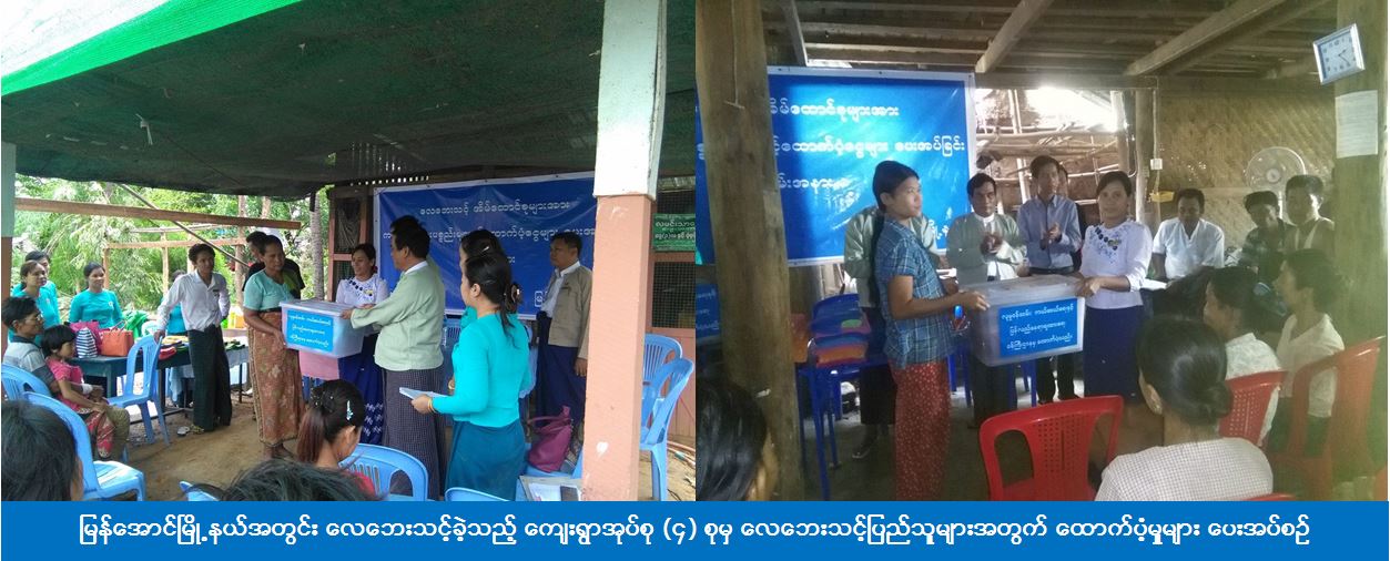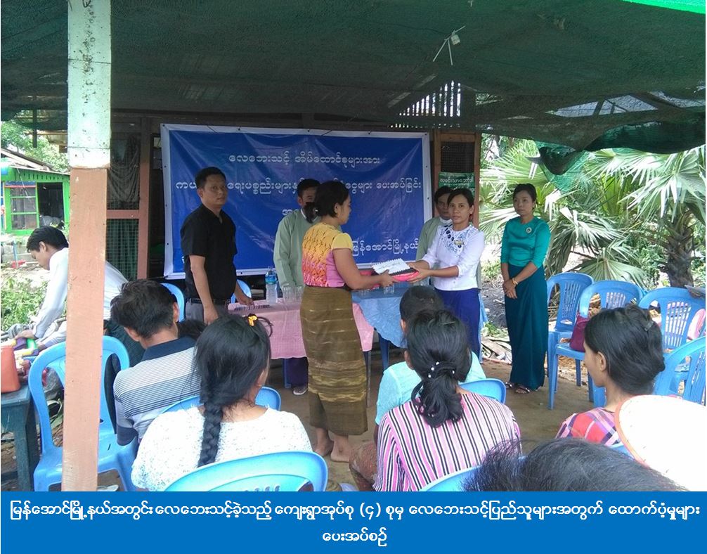 မြန်အောင်မြို့နယ်၊ တယ်ကုန်းကျေးရွာအုပ်စု၊ မြစ်ကျိုးကျေးရွာအုပ်စု၊ ပေါက်ကုန်းစွန်းကျေးရွာအုပ်စုနှင့် လေးတူးကျေးရွာအုပ်စုများအတွင်းရှိ ကျေးရွာ (၁၁) ရွာတွင် (၃၀-၅-၂၀၁၇) ရက်နေ့တွင် ဖြစ်ပွားခဲ့သော လေတိုက်ခတ်မှုကြောင့် အိမ်ခြေ ( ၁၁) လုံးပြိုလဲပျက်စီးခဲ့ပြီး နေအိမ် (၉၄) လုံး တစ်စိတ်တစ်ပိုင်းပျက်စီးခဲ့ကာ လူဦးရေ (၃၉၅) ဦး လေဘေးသင့်ခဲ့ပါသည်။ ပြိုလဲပျက်စီးသော အိမ်ခြေ (၁၁) လုံးအတွက် ပလတ်စတစ်ပုံးပါ ကယ်ဆယ်ရေးပစ္စည်း (၉) မျိုးကိုလည်းကောင်း၊ အမိုးလန်အိမ်ခြေ (၉၄) လုံးအတွက် ကယ်ဆယ်ရေးပစ္စည်း (၄) မျိုးကိုလည်းကောင်း၊ လေဘေးသင့်လူဦးရေ (၃၉၅) ဦးအတွက် ဆန်ရိက္ခာ (၇) ရက်စာ (၈၉၂၅၀၀) ကျပ်တိတိတို့ကို ဟင်္သာတခရိုင်အုပ်ချုပ်ရေးမှူး၊ ဟင်္သာတခရိုင်ဦးစီးမှူးရုံး (ကယ်ဆယ်ရေး) မှ တာဝန်ရှိသူများ၊ မြန်အောင်မြို့နယ်အုပ်ချုပ်ရေးမှူးနှင့် တာဝန်ရှိသူများသည် (၃၁-၅-၂၀၁၇) ရက်နေ့တွင် လေဘေးဖြစ်ပွားရာ တယ်ကုန်းအုပ်စုနှင့် မြစ်ကျိုးအုပ်စုများသို့ သွားရောက်၍ လေဘေးသင့်ပြည်သူများလက်ဝယ်သို့ သွားရောက်ထောက်ပံ့ပေးအပ်ခဲ့ကြောင်း သိရှိရပါသည်။