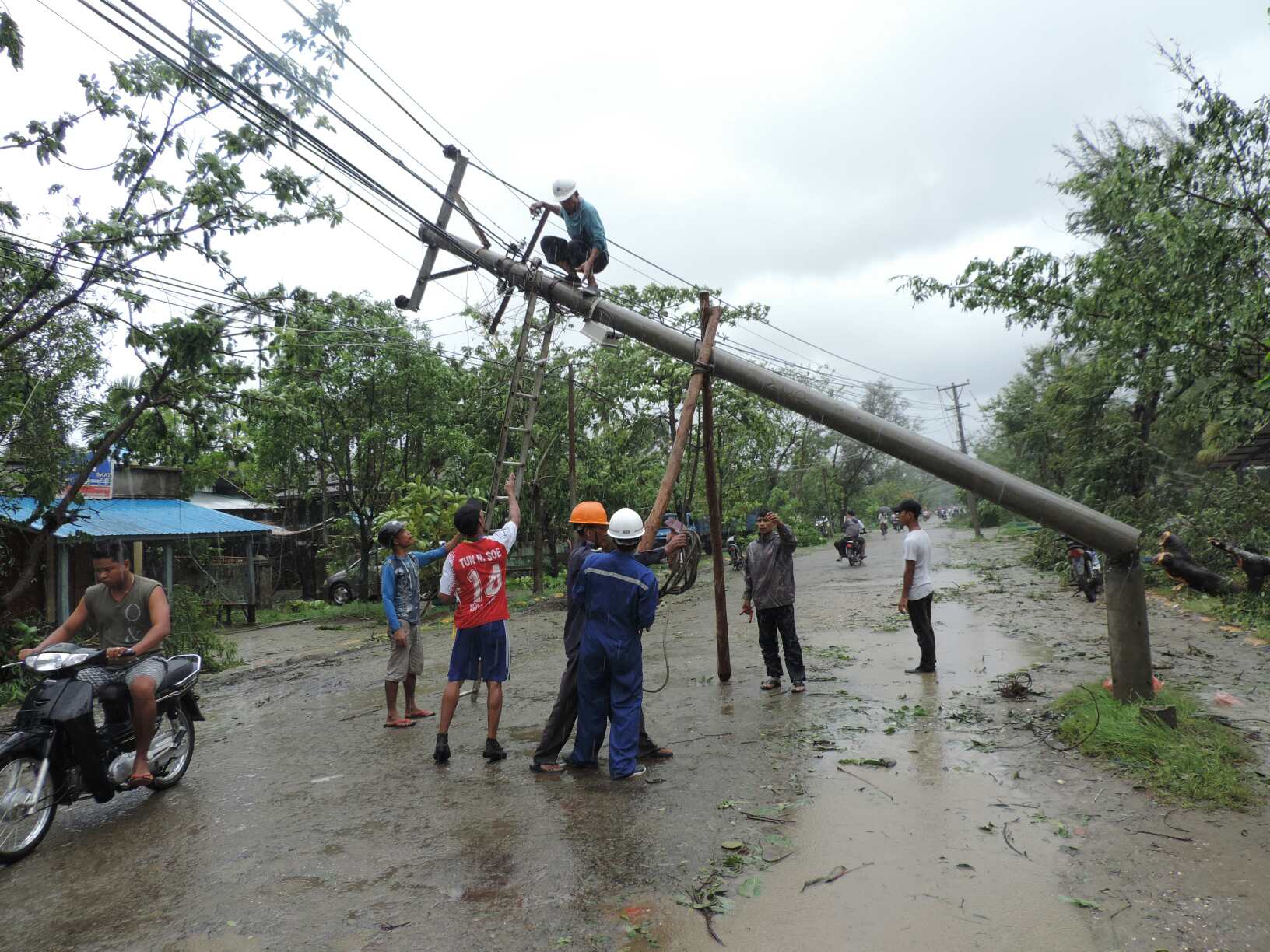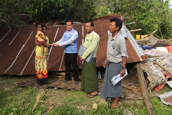 – စစ်တွေ၊ မြောက်ဦး၊ မင်းပြား၊ မြေပုံ၊ ကျောက်တော်၊ ကျောက်ဖြူ၊ ရမ်းဗြဲ၊ မာန်အောင်၊ ရသေ့တောင်၊ ပေါက်တော၊ သံတွဲ၊ ပုဏ္ဏားကျွန်း၊ မောင်တော၊ ဘူးသီးတောင်နှင့် တောင်ကုတ် မြို့နယ်များတွင် မုန်တိုင်းဒဏ်ကိုခံစားခဲ့ရပြီးစုစုပေါင်းအိမ်(၁၅၇၃၇)လုံးဘာသာရေးအဆောက်အဦ(၄၈၃)လုံး၊ရုံးအဆောက်အဦး(၃၂)လုံး၊ ၀န်ထမ်းအိမ်ရာ(၁၈)လုံး၊ ဆေးရုံ/ဆေးခန်း(၂၇)ခု၊ စာသင်ကျောင်း(၃၂၂)ကျောင်း၊ IDP Camp (၅)ခု၊ စားသောက်ဆိုင်(၇)ဆိုင်၊ ဆန်စက်(၄)လုံးတို့ ထိခိုက်ပျက်စီးခဲ့ပြီးဓါတ်တိုင်များလဲပြိုခြင်းများဖြစ်ပွားခဲ့ပါသည်။