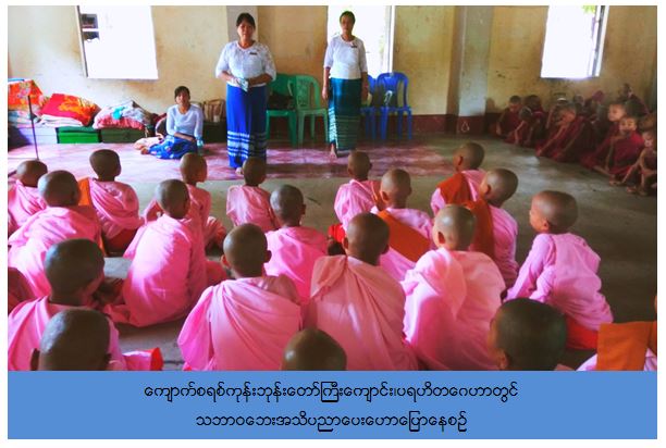 ကယ်ဆယ်ရေးနှင့်ပြန်လည်နေရာချထားရေးဦးစီးဌာန၊ ပြည်ထောင်စုနယ်မြေ၊ နေပြည်တော်ဦးစီးမှူးရုံးမှ တာဝန်ရှိသူများသည် (၆-၆-၂၀၁၇)ရက်နေ့တွင် တပ်ကုန်းမြို့နယ်၊ ကျောက်စရစ်ကုန်းဘုန်းတော်ကြီးကျောင်း ပရဟိတဂေဟာတွင် ကိုရင်များ၊ မယ်သီလရှင်များ၊ ကျောင်းသား/သူ များစုစုပေါင်း (၁၅၀)ဦးခန့်အား သဘာဝဘေးအသိပညာပေးဟောပြောခဲ့ပြီး လက်ကမ်းစာစောင်များ၊ ပိုစတာများ၊ ခေါက်ဆွဲခြောက်များ၊ အဝတ်အထည်များလည်းဝေငှပေးခဲ့ကြောင်း သတင်းရရှိပါသည်။