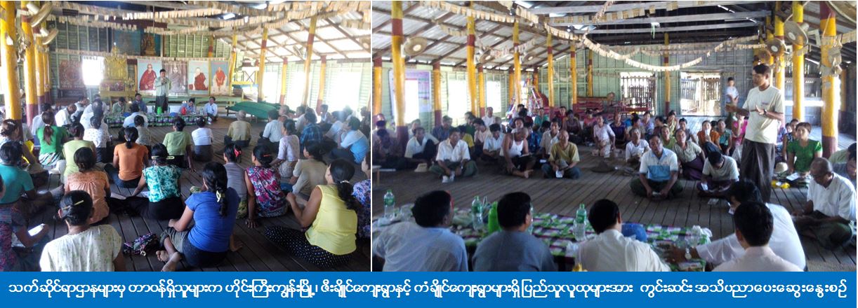 ၄င်းနောက် ကယ်ဆယ်ရေးနှင့် ပြန်လည်နေရာချထားရေးဦးစီးဌာန၊ ဧရာဝတီတိုင်းဒေသကြီးဦးစီးမှူး ဦးသန်းစိုး (ညွှန်ကြားရေးမှူး) မှ သဘာဝဘေးနှင့်ပတ်သက်၍ ပြည်သူများအား အသိပညာပေးဆွေးနွေးခြင်း၊ သဘာဝဘေးအသိပညာပေး ဗီနိုင်းများကပ်၍ အသိပညာပေးခြင်း၊ လက်ကမ်းစာစောင်များ ဝေငှဖြန့်ဝေခြင်းများ ဆောင်ရွက်ခဲ့ပါသည်။