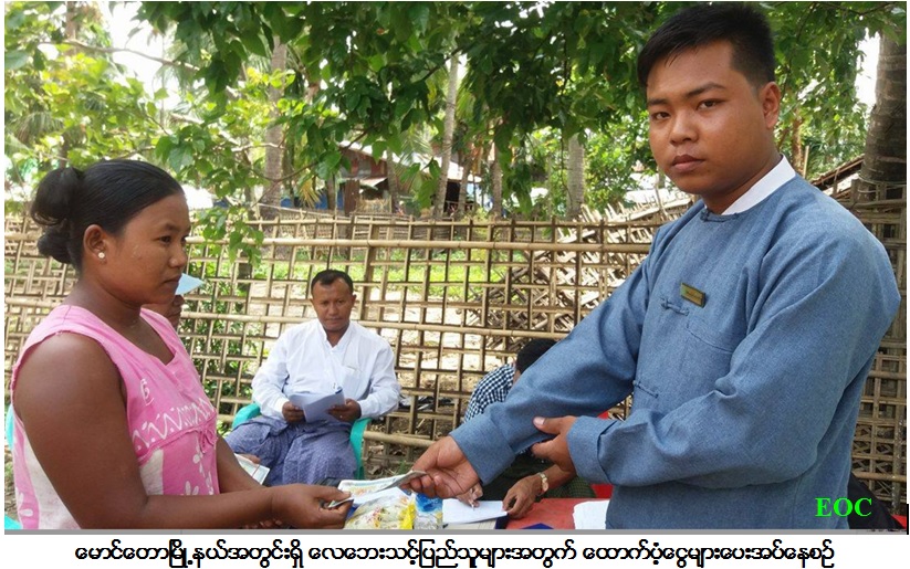 ကယ်ဆယ်ရေးနှင့်ပြန်လည်နေရာချထားရေးဦးစီးဌာန၊ မောင်တောခရိုင်ဦးစီးမှူးရုံးမှ တာဝန်ရှိသူများသည် မောင်တောမြို့နယ် (၂၉ -၅ -၂၀၁၇) ရက်နေ့မှ (၃၀-၅-၂၀၁၇) ရက်နေ့၌ ဖြစ်ပွားသော လေဘေးသင့်ကျေးရွာ အုပ်စု (၅) စု မှ လုံးဝပြိုကျအိမ် (၅၁) လုံးအတွက် (၃၂၅၀၀၀၀/-) ကျပ်၊ တစ်စိတ်တစ်ပိုင်း ပျက်စီးနေအိမ် (၉၁) လုံးအတွက် (၁၉၂၀၀၀၀/-) ကျပ်၊ စုစုပေါင်း (၅၁၇၀၀၀၀/-) ကျပ်အား (၉-၆-၂၀၁၇) ရက်နေ့တွင် သွားရောက်ထောက်ပံ့ပေးခဲ့ကြောင်း သတင်းရရှိပါသည်။