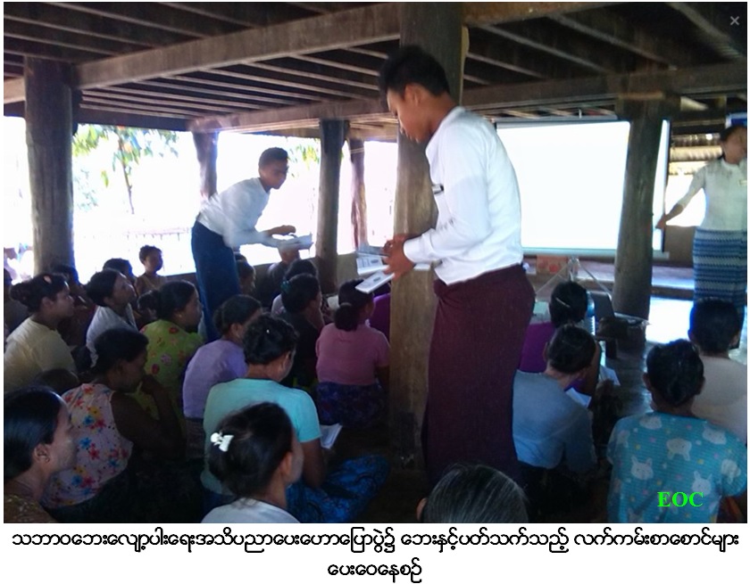 ကယ်ဆယ်ရေးနှင့်ပြန်လည်နေရာချထားရေးဦးစီးဌာန၊ မြောက်ဦးခရိုင်ဦးစီးမှူးရုံးမှ တာဝန်ရှိသူများသည် မြောက်ဦးမြို့နယ်၊ မဟာထီးကျေးရွာ အုပ်စုမဟာထီးကျေးရွာတွင် သဘာဝဘေးလျော့ပါးရေးအသိပညာပေးဟောပြောပွဲအား (၉-၆-၂၀၁၇) ရက်နေ့၌ ကျင်းပပြုလုပ်ခဲ့ ရာ ကျေးရွာသူ၊ ကျေးရွာသား စုစုပေါင်း (၁၀၂) ဦး တက်ရောက်ခဲ့ပြီး တက်ရောက်လာသူများအား သဘာဝဘေးမကျရောက်မီ၊ ကျရောက်နေစဉ်၊ ကျရောက်ပြီး နောက်ဆောင်ရွက်ရမည့် ဆောင်ရန်၊ရှောင်ရန်များကို ရှင်းလင်ပြောပြပေးခြင်း၊ လက်ကမ်းစာစောင်များ၊ နံရံကပ်ပိုစတာများဖြန့်ဝေပေးခြင်းနှင့် အချိုရည်ဗူးများပေးခြင်း စသည့်တို့ကိုဆောင်ရွက်ပေးခဲ့ကြောင်း သတင်းရရှိပါသည်။