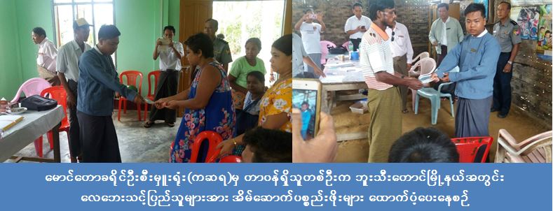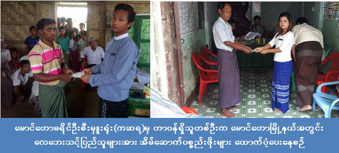 (၁၀-၆ -၂၀၁၇) ရက်နေ့တွင် မောင်တောမြို့နယ် လေဘေးသင့်ကျေးရွာအုပ်စုများမှ အုပ်စု (၁၆) စု ရှိ လုံးဝပြိုလဲအိမ် (၆၃၇) လုံးအတွက် (၃၃,၈၀၀,၀၀၀)ကျပ် ၊ တစ်စိတ်တစ်ပိုင်း ပျက်စီးအိမ် (၁,၄၉၀) လုံးအတွက် (၂၉,၈၀၀,၀၀၀)ကျပ် ၊ စုစုပေါင်း (၆၃,၆၀၀,၀၀၀) ကျပ်နှင့် ဘူးသီးတောင်မြို့နယ် လေဘေးသင့် ကျေးရွာအုပ်စုများမှ အုပ်စု (၄)စုရှိ လုံးဝပြိုလဲအိမ် ( ၅၃) လုံးအတွက် (၂,၈၀၀,၀၀၀)ကျပ် တစ်စိတ်တစ်ပိုင်းပျက်စီးအိမ် (၃၅၇) လုံးအတွက် (၈,၆၅၀,၀၀၀)ကျပ် ၊ စုစုပေါင်း ကျပ်(၁၁,၄၅၀,၀၀၀ ) တို့ကို မောင်တောခရိုင်ဦးစီးမှူးရုံး (ကဆရ) မှတာဝန်ရှိသူများနှင့် မြို့နယ်အဆင့်ဌာနဆိုင်ရာများ သွားရောက်ထောက်ပံ့ပေးခဲ့ကြောင်း သိရှိရပါသည်။