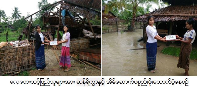 ကယ်ဆယ်ရေးနှင့်ပြန်လည်နေရာချထားရေးဦးစီးဌာန၊ မြောက်ဦးခရိုင်ဦးစီးမှူးရုံးမှ တာဝန်ရှိသူများ သည် (၁၂-၆-၂၀၁၇) ရက်နေ့တွင် မြောက််ဦးမြို့နယ်အတွင်း ရုတ်တရက်လေပြင်းတိုက်ခတ်မှုကြောင့် သံချောင်းကျေးရွာတွင် လုံးဝပျက်စီးသွားသောလူနေအိမ် (၂) လုံး အိမ်ထောင်စု(၂) စုအတွက် ကယ်ဆယ်ရေးပစ္စည်း(၁၀)မျိုးအိမ်ထောင်စု(၂)စာ ပီပင်ရင်းကျေးရွာတွင် အမိုးလန်သွားသော လူနေအိမ်(၄)လုံး အိမ်ထောင်စု(၄)စုအတွက် ကဆရပစ္စည်း(၆)မျိုး အိမ်ထောင် စု(၄)စုစာအား(၁၂-၆-၂၀၁၇) ရက်နေ့တွင်လည်းကောင်း ဘေးသင့်လူဦးရေ(၃၁)ဦးအတွက် ဆန်ရိက္ခာ(၇)ရက်စာဖိုး (၆၅၁၀၀) လုံးဝ ပျက်စီးသွားသော ဓနိမိုး၊ ထရံကာ လူနေအိမ်(၂)လုံးအတွက် အိမ်ဆောက်ပစ္စည်းဖိုး (၂၀၀၀၀၀) နှင့် အမိုးလန်ပျက်စီးသွားသောလူနေအိမ်(၄)လုံးအတွက် အိမ်ဆောက်ပစ္စည်းဖိုး (၂၀၀၀၀၀)အား(၁၃-၆-၂၀၁၇)ရက်နေ့တွင်လည်းကောင်း မြောက်ဦခရိုင်ဦးစီးမှူးရုံးမှ ဘေးသင့်ပြည်သူများထံသွားရောက်ထောက်ပ့ံပေးကြောင်းသတင်းရရှိပါသည်Source: မြောက်ဦးခရိုင်ဦးစီးမှူးရုံး (ကဆရ)