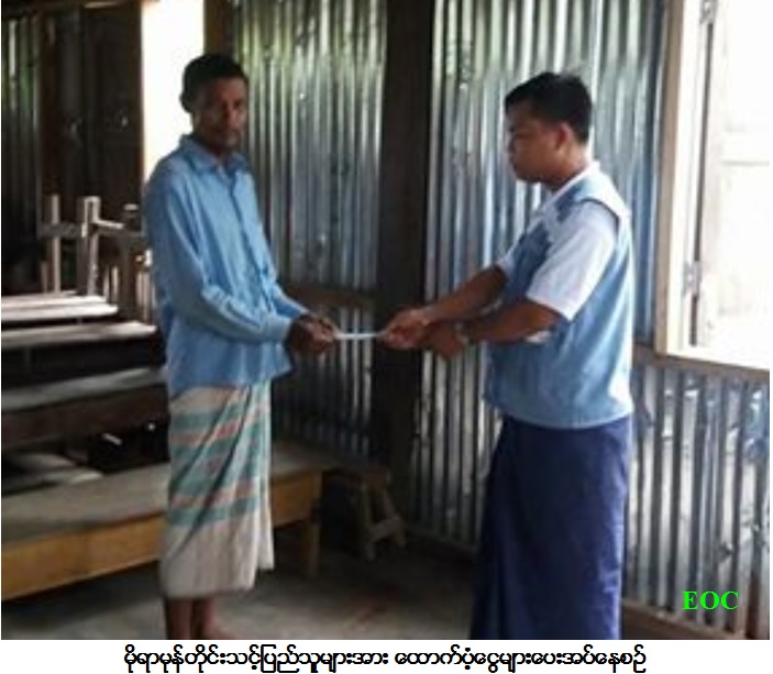 ကယ်ဆယ်ရေးနှင့်ပြန်လည်နေရာချထားရေးဦးစီးဌာန၊ မောင်တောခရိုင်ဦးစီးမှူးရုံးမှ တာဝန်ရှိသူများသည် မိုရာမုန်တိုင်း တိုက်ခတ်မှုကြောင့် ပျက်စီးဆုံးရှုံခဲ့သော မောင်တောမြို့နယ်၊ လေဘေးသင့်ကျေးရွာအုပ်စု (၂၈) စုမှ လုံးဝပြိုကျသွားသည့် အိမ် (၁၀၅၂) လုံးအတွက် (၄၂၂၀၀၀၀၀/-) ကျပ် တစ်စိတ်တစ်ပိုင်းပြိုကျအိမ် (၂၀၇၆) လုံးအတွက် (၄၆၇၉၂၀၀၀/-) ကျပ်၊ စုစုပေါင်း (၈၈၉၉၂၀၀၀/-) ကျပ်တို့ အား (၁၃ -၆ -၂၀၁၇) ရက်နေ့တွင် မြို့နယ်အဆင့်ဌာနဆိုင်ရာများနှင့် သွားရောက်ထောက်ပံ့ပေးအပ်ခဲ့ကြောင်း သတင်းရရှိပါသည်။