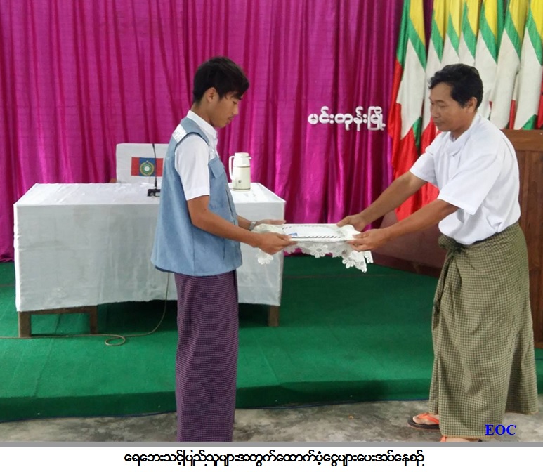 ကယ်ဆယ်ရေးနှင့်ပြန်လည်နေရာချထားရေးဦးစီးဌာန၊ သရက်ခရိုင်ဦးစီးမှူးရုံးမှ တာဝန်ရှိသူများသည် သရက်ခရိုင်၊ မင်းတုန်းမြို့နယ်၊ မဲဇလီ ကျေးရွာတွင် မိုးသည်းထန်စွာရွာသွန်းပြီး လွှာချောင်းရေမြင့်တက်မှုကြောင့် (၁၃-၆-၂၀၁၇) ရက်နေ့က ရေဘေးသင့်၍ ပြောင်းရွှေ့ပေးခဲ့ရသည့် အိမ်ထောင်စု (၆) စုအတွက် ကယ်ဆယ်ရေးပစ္စည်း (၆) မျိုး၊ ဆန်ဖိုးငွေ (၅၆၇၀၀/-) ကျပ်နှင့် အိမ်ဆောက်ပစ္စည်းဖိုးငွေ (၁၂၀၀၀၀/-) ကျပ်၊ စုစုပေါင်း (၁၇၆၇၀၀/-) ကျပ်တို့အား (၁၅- ၆ -၂၀၁၇) ရက်နေ့တွင် မင်းတုန်းမြို့နယ်အုပ်ချုပ်ရေးမှူးရုံးခန်း၌ ကျေးရွာအုပ်ချုပ်ရေးမှူးထံသို့လွှဲ ပြောင်းထောက်ပံ့ပေးအပ်ခဲ့ကြောင်း သတင်းရရှိပါသည်။