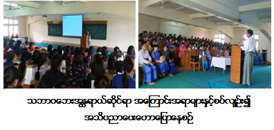ကယားပြည်နယ်၊ လွိုင်ကော်တက္ကသိုလ်၌ သဘာဝဘေးအန္တရာယ်ဆိုင်ရာအသိပညာပေးဟောပြောပွဲကို ဇွန်လ ၁၆ ရက်နေ့က ပြုလုပ်ခဲ့ရာ ပြည်နယ်ကယ်ဆယ်ရေးနှင့်ပြန်လည်နေရာချထားရေးဦးစီးဌာန၊ ပြည်နယ်မိုးလေဝသနှင့် ဇလဗေဒဦးစီးဌာနတို့မှ ပြည်နယ်ဦးစီးမှူးများက ဆွေးနွေးပို့ချခဲ့ပြီး အဆိုပါဟောပြောပွဲသို့ ဆရာ/ဆရာမနှင့် ကျောင်းသား/ကျောင်းသူ စုစုပေါင်း (၂၅၀) ဦး တက်ရောက်ခဲ့ကြကြောင်း သတင်းရရှိပါသည်။