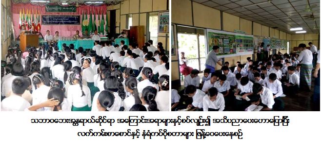 ကယ်ဆယ်ရေးနှင့်ပြန်လည်နေရာချထားရေးဦးစီးဌာန၊ သထုံခရိုင်ဦးစီးမှူးဦးစီးမှူးရုံးမှ တာဝန်ရှိသူများသည် သထုံခရိုင်ရဲတပ်ဖွဲ့၊ ပညာရေးဌာန၊ ပြန်ကြားရေးနှင့့် ပြည်သူဆက်ဆံရေးဦးစီးဌာနတို့နှင့် ပူးပေါင်းကာ (၁၆-၆-၂၀၁၇) ရက်နေ့ ၌ မွန်ပြည်နယ် သထုံမြို့ရှိ အမှတ် (၃) အခြေခံပညာအထက်တန်းကျောင်းတွင် သဘာဝဘေး အန္တရာယ်နှင့်ပတ်သက်သည့် ရှောင်ရန်/ဆောင်ရန်များဟောပြောခဲ့ပြီး တက်ရောက်သူ ကျောင်းသား/သူဦးရေ (၁၅၁) ဦးအား လက်ကမ်းစာစောင်များ၊ နံရံကပ်ပိုစတာများ ဝေငှပေးခဲ့ကြောင်း သတင်းရရှိပါသည်။