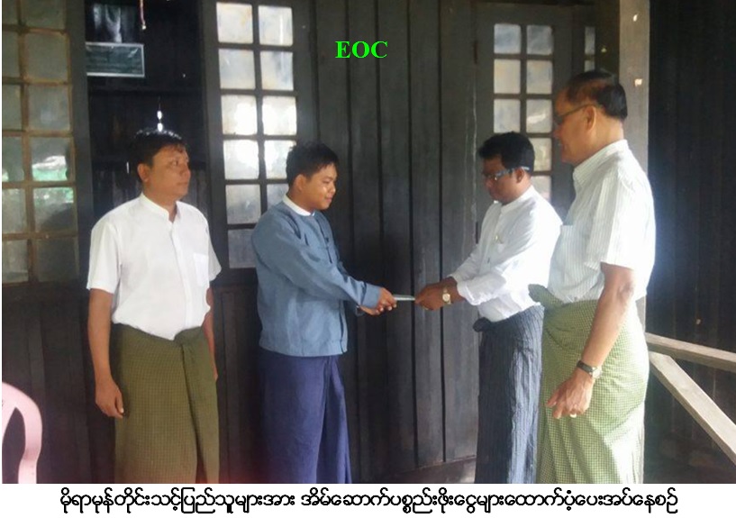 ကယ်ဆယ်ရေးနှင့်ပြန်လည်နေရာချထားရေးဦးစီးဌာန၊ မောင်တောခရိုင်ဦးစီးမှူးရုံးမှ တာဝန်ရှိသူများသည် မိုရာမုန်တိုင်းကြောင့် မောင်တောမြို့နယ် လေဘေးသင့်ကျေးရွာအုပ်စု (၁၁) စုမှ လုံးဝပြိုကျအိမ် (၂၀၄) လုံးအတွက် (၁၂၅၀၀၀၀၀/-) ကျပ်၊ တစ်စိတ်တစ်ပိုင်းပျက်စီးအိမ် (၃၁၉) လုံးအတွက် (၆၂၈၀၀၀၀/-) ကျပ်၊ စုစုပေါင်း (၁၈၇၈၀၀၀၀၀/-) ကျပ်တို့အား (၁၈-၆-၂၀၁၇) ရက်နေ့တွင် မြို့နယ်အဆင့်ဌာနဆိုင်ရာများနှင့်အ တူ သွားရောက်ထောက်ပံ့ခဲ့ကြောင်း သတင်းရရှိပါသည်။