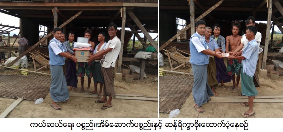 ကယ်ဆယ်ရေးနှင့် ပြန်လည်နေရာချထားရေးဦးစီးဌာန၊ ပခုက္ကူခရိုင်ဦးစီးမှူးရုံးမှ တာဝန်ရှိသူ များသည် ရေစကြိုမြို့နယ်၊ မိုးကွဲကျေးရွာအုပ်စု၊ ချင်းယားကျေးရွာတွင် (၁၈-၆-၂၀၁၇ )ရက်နေ့၌ ကမ်းပြိုဘေးဖြစ်ပွားခဲ့သော ကမ်းပြိုဘေးသင့်အိမ်ခြေ(၃)လုံး၊ အိမ်ထောင်စု(၃)စု၊ လူဦးရေ(၁၄) ဦးအတွက် အိမ်ဆောက်ပစ္စည်းဖိုး(၃)သိန်းကျပ်၊ ဆန်ရိက္ခာဖိုး (၂၉၄၀၀ိ/) ကျပ်နှင့် ကယ်ဆယ်ရေး ပစ္စည်း (၉)မျိုးတို့အား လည်း ကောင်း၊ ဗလဗကျေးရွာအုပ်စု၊ ဗလကျေးရွာတွင် ၂၀-၆-၂၀၁၇ ရက်နေ့၌ ကမ်းပြိုဘေးဖြစ်ပွားခဲ့သော ကမ်းပြိုဘေး သင့်အိမ်ခြေ(၆)လုံး၊ အိမ်ထောင်စု(၆)စု၊ လူဦးရေ (၂၈)ဦး အတွက် အိမ်ဆောက်ပစ္စည်းဖိုး (၆)သိန်းကျပ်၊ ဆန်ရိက္ခာဖိုး (၅၈၈၀၀ိ/)ကျပ်၊ ကယ်ဆယ်ရေး ပစ္စည်း(၉)မျိုးတို့အား လည်းကောင်း၊ နွယ်နီကျေးရွာအုပ်စု၊ နွယ်နီကျွန်းကျေးရွာတွင် (၁၈-၆-၂၀၁၇) ရက်နေ့၌ ကမ်းပြိုဘေးဖြစ်ပွားခဲ့သော ကမ်းပြိုဘေးသင့်အိမ်ခြေ(၁)လုံး၊ အိမ်ထောင်စု(၁)စု၊ လူဦးရေ (၃)ဦး အတွက် အိမ်ဆောက်ပစ္စည်းဖိုး (၁)သိန်းကျပ်၊ ဆန်ရိက္ခာဖိုး (၆၃၀၀ိ/) ကျပ်နှင့် ကယ်ဆယ်ရေး ပစ္စည်း (၉)မျိုးတို့အား (၂၁-၆-၂၀၁၇) ဘေးသင့်ပြည်သူများ၏ လက်ဝယ်အရောက် ထောက်ပံ့ပေးအပ် ခဲ့ကြောင်း သတင်းရရှိပါသည်။Source: ပခုက္ကူခရိုင်ဦးစီးမှူးရုံး(ကဆရ)