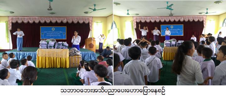 ကယ်ဆယ်ရေးနှင့်ပြန်လည်နေရာချထားရေးဦးစီးဌာန၊ မန္တလေးတိုင်းဒေသကြီးဦးစီးမှူးရုံးမှ သဘာဝ ဘေးလျော့ပါးရေးလုပ်ငန်းစဉ်ဖြစ်သည့် ပြည်သူသို့သဘာဝဘေးအန္တရာယ်ဆိုင်ရာအသိပညာပေးဟော ပြောပွဲများပြုလုပ်ရာတွင်အားလုံးပါဝင်သည့်သဘာဝဘေးလျော့ပါးရေးလုပ်ငန်းစဉ်ဖြစ်စေရေး ထိခိုက် လွယ်အုပ်စုများဖြစ်သည့်နားမကြားသောကလေးများကျောင်း(လူမှုဝန်ထမ်းဦးစီးဌာန)ရှိ ကလေးငယ် များ အား သဘာဝဘေးဒဏ်ကြံ့ကြံ့ခံနိုင်သည့်စွမ်းဆောင်ရည် ပြည့်ဝစေရေး အသိပညာပေးဟောပြော ခြင်း၊ သဘာဝဘေးအသိပညာပေးပုံပြင်များပြောခြင်း၊ သရုပ်ပြကစားခြင်းများကို (၂၂.၆.၂၀၁၇)ရက် နေ့တွင် ဆောင်ရွက်ခဲ့ရာ အဆိုပါကျောင်းမှကလေးငယ်များနှင့်ဆရာ၊ဆရာမ အင်အား (၂၀၀)ခန့်တက် ရောက်၍အပြန်အလှန်ဆွေးနွေးခဲ့ကြပါသည်။ဟောပြောပွဲတွင်သဘာဝဘေးအသိပညာပေး လက်ကမ်း စာစောင်များ၊ ပိုစတာများ၊ကျောင်းသုံးဗလာစာအုပ်များ၊ ကျောင်းဝတ်စုံများအား ဝေငှထောက်ပံ့ခဲ့ ကြောင်း သတင်းရရှိပါသည်။Source: မန္တလေးတိုင်းဒေသကြီးဦးစီးမှူးရုံး(ကဆရ)