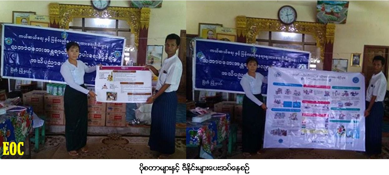 ကယ်ဆယ်ရေးနှင့်ပြန်လည်နေရာချထားရေးဦးစီးဌာန၊ မြိတ်ခရိုင်ဦးစီးမှူးရုံးမှ တာဝန်ရှိသူများသည် (၂၂-၆-၂၀၁၇) ရက်နေ့တွင် မြိတ်မြို့နယ်၊ သံသရာအေးဘုန်းတော်ကြီးပညာသင်ကျောင်း၌ ဆရာ/ဆရာမများနှင့် ကျောင်းသား/ကျောင်းသူ စုစုပေါင်း (၁၈၈) ဦးအား သဘာဝဘေးအန္တရာယ်နှင့် ပတ်သက်သည့် အကြောင်းအရာများအား ဆွေးနွေးဟောပြောခြင်း၊ ဆောင်ရန်/ရှောင်ရန်များအား ဟောပြောခြင်း၊ လက်ကမ်းစာစောင်များဝေငှပေးခြင်း၊ နံရံကပ်ပိုစတာများပေးအပ်ခြင်း၊ ကျောင်းသုံးဗလာစာအုပ်နှင့် ဘောလ်ပင်များပေးအပ်ခြင်းနှင့် မုန်တိုင်းအသိပညာပေးဗီနိုင်များကိုလည်းပေးအပ်ခဲ့ကြောင်း သတင်းရရှိပါသည်။