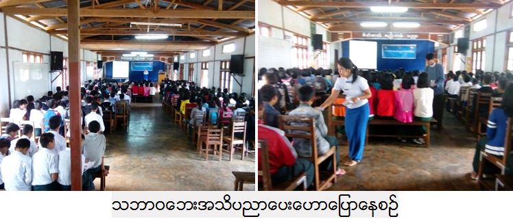 လူမှုဝန်ထမ်း၊ကယ်ဆယ်ဝန်ကြီးဌာနကယ်ဆယ်ရေးနှင့်ပြန်လည်နေရာချထားရေးဦးစီးဌာန ရှမ်းပြည် နယ်ဦး စီးမှူးရုံးမှ တာဝန်ရှိသူများသည် (၂၃.၆.၂၀၁၇) ရက်နေ့ နံနက်ပိုင်းတွင် ပင်လောင်းမြို့ အထက(၁) ၌ သဘာဝဘေးအသိပညာပေးဟောပြောပွဲ ကျင်းပပြုလုပ်ခဲ့ရာ ကျောင်းသား/သူ အင်အား(၃၀၀) ခန့်တက်ရောက်ခဲ့ ကြောင်း သတင်းရရှိပါသည်။Source: ရှမ်းပြည်နယ်ဦးစီးမှူးရုံး(ကဆရ)