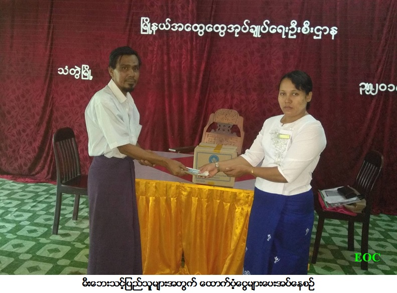 လူမှုဝန်ထမ်း၊ ကယ်ဆယ်ရေးနှင့်ပြန်လည်နေရာချထားရေးဝန်ကြီးဌာန၊ ကယ်ဆယ်ရေးနှင့့်ပြန်လည်နေရာချထားရေးဦးစီးဌာန၊ ကျောက်ဖြူခရိုင် ဦးစီးမှူးရုံးမှ တာဝန်ရှိသူများသည် (၂၀-၆-၂၀၁၇) ရက်နေ့တွင် သံတွဲမြို့အမှတ် (၁) ရပ်ကွက် မာဃလမ်း၌ဖြစ်ပွားခဲ့သော မီးဘေးကြောင့် တစ်စိတ်တစ်ပိုင်းပျက်စီးသော အိမ် (၁) လုံးမှ အိမ်ထောင်စု (၁) စုအတွက် ကယ်ဆယ်ရေးပစ္စည်း (၆) မျိုး၊ အိမ်ဆောက်ပစ္စည်းဖိုးငွေ (၄၀၀၀၀/-) ကျပ်နှင့် ဆန်ရိက္ခာဖိုးငွေ လူဦးရေ (၂) ဦးအတွက် (၇) ရက်စာ (၄၂၀၀/-) ကျပ်၊ စုစုပေါင်း (၄၄၂၀၀/-) ကျပ်တို့အား သံတွဲမြို့နယ်အထွေထွေ အုပ်ချုပ်ရေးဦးစီဌာနခန်းမ၌ ဘေးသင့်ပြည်သူလက်ဝယ်သို့ (၂၃-၆-၁၇) ရက်နေ့တွင် သွားရောက်ထောက်ပံ့ပေးအပ်ခဲ့ကြောင်း သတင်းရရှိပါသည်။