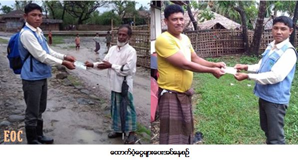 ကယ်ဆယ်ရေးနှင့်ပြန်လည်နေရာချထားရေးဦးစီးဌာန၊ မောင်တောခရိုင်ဦးစီးမှူးရုံးမှ တာဝန်ရှိသူများသည် မောင်တောမြို့နယ်အတွင်းရှိ လေဘေးသင့်ကျေးရွာအုပ်စုများအနက် အုပ်စု (၁၂) စုမှ လုံးဝပြိုလဲအိမ် (၆၁၁) လုံးအတွက် အိမ်ဆောက်ပစ္စည်းဖိုးငွေ (၃၃,၅၀၀,၀၀၀) ကျပ်နှင့် တစ်စိတ်တစ်ပိုင်း ပျက်စီးအိမ် (၉၁၁) လုံးအတွက် အိမ်ဆောက်ပစ္စည်းဖိုးငွေ (၁၈,၂၂၀,၀၀၀) ကျပ်၊ စုစုပေါင်း (၅၁,၇၂၀,၀၀၀) ကျပ်တို့အား (၂၂-၆-၂၀၁၇) ရက်နေ့တွင် မြို့နယ်အဆင့်ဌာနဆိုင်ရာများနှင့်အတူ သွားရောက်ထောက်ပံ့ပေးအပ်ခဲ့ကြောင်း သတင်းရရှိပါသည်။