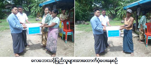 ကယ်ဆယ်ရေးနှင့်ပြန်လည်နေရာချထားရေးဦးစီးဌာန၊ဧရာဝတီတိုင်းဒေသကြီးဦးစီးမှူးရုံးမှတာဝန်ရှိသူများသည် ၊မအူပင်ခရိုင်၊မအူပင်မြို့နယ်၊ငါးကြီးဂရက်ကျေးရွာနှင့်ကုလားစကျေးရွာတို့တွင် (၂၀-၆-၂၀၁၇) ရက်နေ့၌ ဖြစ်ပွားခဲ့သောလေဘေးကြောင့်အမိုးလန်နေအိမ် (၈) လုံး၊ အိမ်ထောင်စု (၈) စုမှ လူဦးရေ (၃၄) ဦးအတွက် ကယ်ဆယ်ရေးပစ္စည်း (၁၀) မျိုး၊ (၈)အိမ်ထောင်စုစာ၊ ဆန်ရိက္ခာ (၇) ရက်စာ (၇၁၄၀၀ိ/-)၊ အိမ်ဆောက်ပစ္စည်းဖိုး ရန်ပုံငွေ (၂၄၀၀၀၀ိ/-)၊ စုစုပေါင်းရန်ပုံငွေ(၃၁၁၄၀၀ိ/-) အား(၂၃-၆-၂၀၁၇)ရက်နေ့တွင်ဘေးသင့်ပြည်သူများအားလက်ဝယ်အရောက်ကွင်းဆင်းထောက်ပံ့ ခြင်းများဆောင်ရွက်ခဲ့ကြောင်းသတင်းရရှိပါသည်။Source: ဧရာဝတီတိုင်းဒေသကြီး ်ဦးစီးမှူးရုံး (ကဆရ)
