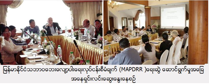ထို့နောက် ကုလသမဂ္ဂဖွံ့ဖြိုးမှုအစီအစဉ်၊ဌာနေကိုယ်စားလှယ်၊ Mr. Peter Bachelor က MAPDRR အကောင်အထည်ဖော်နိုင်ရေးအတွက် နိုင်ငံတကာအဖွဲ့အစည်းများ၏ ပူးပေါင်းဆောင်ရွက်မှုမှာ များစွာအရေးကြီးကြောင်း၊ သဘာဝဘေးရင်ဆိုင်တုံ့ပြန်နိုင်စွမ်းမြင့်မားလာခြင်းဖြင့် ဖွ့ံဖြိုးတိုးတက်မှုကို ပါဖော်ဆောင်နိုင်လာမည်ဖြစ်ကြောင်း စသည်ဖြင့်ဆွေးနွေးပြောကြားခဲ့ပြီး အစည်းအဝေးတက်ရောက် လာသူများမှလည်း MAPDRR ၂၀၁၇တွင်ပါဝင်သည့် ဦးစားပေးလုပ်ငန်းများ၊ ရန်ပုံငွေရရှိ ရေးနည်းလမ်းများနှင့်စပ်လျဉ်းပြီး သိရှိလိုသည်များကိုမေးမြန်းဆွေးနွေးခဲ့ကြောင်း သတင်းရရှိပါသည်။