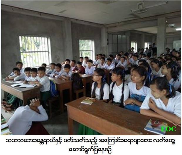 လူမှုဝန်ထမ်း၊ ကယ်ဆယ်ရေးနှင့်ပြန်လည်နေရာချထားရေးဝန်ကြီးဌာန၊ ကယ်ဆယ်ရေးနှင့့်ပြန်လည်နေရာချထားရေးဦးစီးဌာန၊ မြိတ်ခရိုင်ဦးစီးမှူး ရုံးမှ တာဝန်ရှိသူများသည် (၂၆-၆-၂၀၁၇) ရက်နေ့တွင် မြိတ်မြို့နယ် အထက (ခွဲ) တောရကျောင်း၌ သဘာဝဘေးအန္တရာယ်နှင့် ပတ်သက်သည့် အကြောင်းအရာများအား ဆွေးနွေးဟောပြောခြင်း၊ ရှောင်ရန်/ဆောင်ရန် များဟောပြောခဲ့ပြီး လက်ကမ်းစာစောင်၊ နံရံကပ်ပိုစတာများ၊ ကျောင်းသုံး ဗလာစာအုပ်နှင့် မုန်တိုင်းအသိပညာပေးဗွီနိုင်းအား ဖြန့်ဝေပေးခဲ့ပါသည်။ ထိုဟောပြောပွဲသို့ တက်ရောက်သူ ကျောင်းသား၊ ကျောင်းသူဦးရေနှင့် ဆရာ၊ ဆရာမ စုစုပေါင်း (၁၅၀) ဦး တက်ရောက်ခဲ့ကြောင်း သတင်းရရှိပါ သည်။